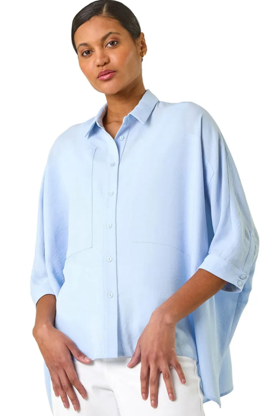 Be the first to review “Roman Light Blue Boxy Relaxed Button Blouse” Cancel reply