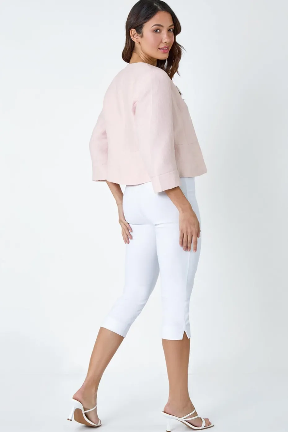 Roman Light Pink 3/4 Sleeve Pleated Textured Cropped Jacket