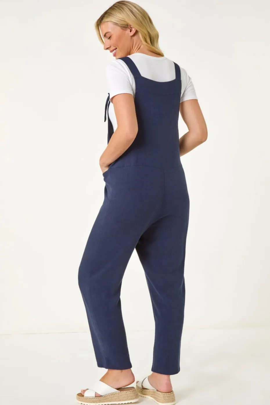 Petite Strap Woven Jumpsuit from Roman. Step into the season with effortless style wearing this strappy jumpsuit. The square neckline and dungaree style exude a relaxed vibe, perfect for warmer days. Crafted from a comfortable woven fabric, this full-length jumpsuit is both chic and comfy. Pair it with sandals and a denim jacket for a laid-back yet fashionable look.
