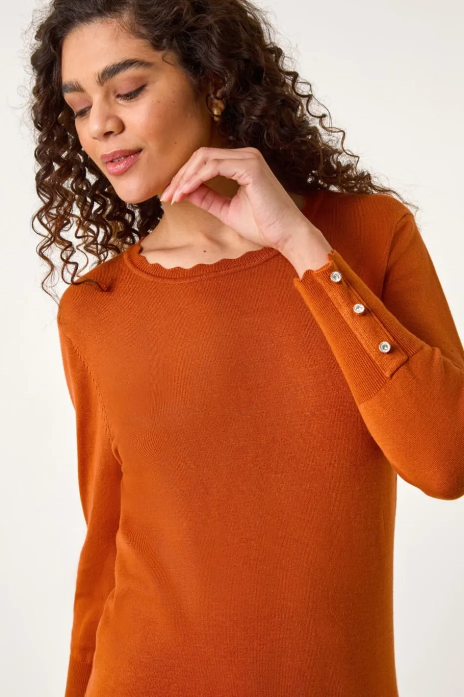 Be the first to review “Roman Orange Scallop Neck Button Knit Jumper” Cancel reply