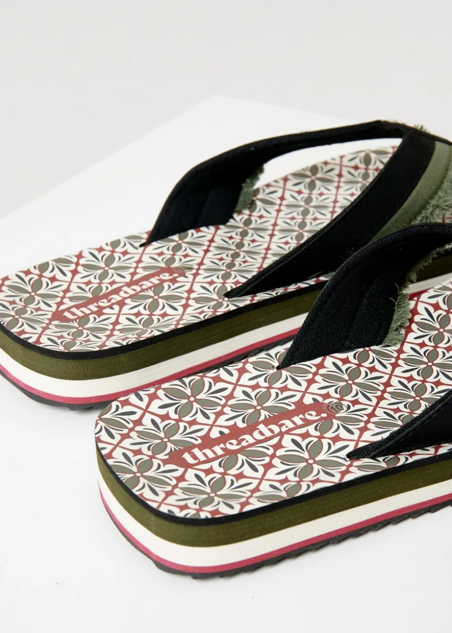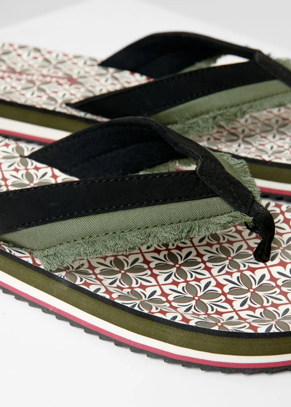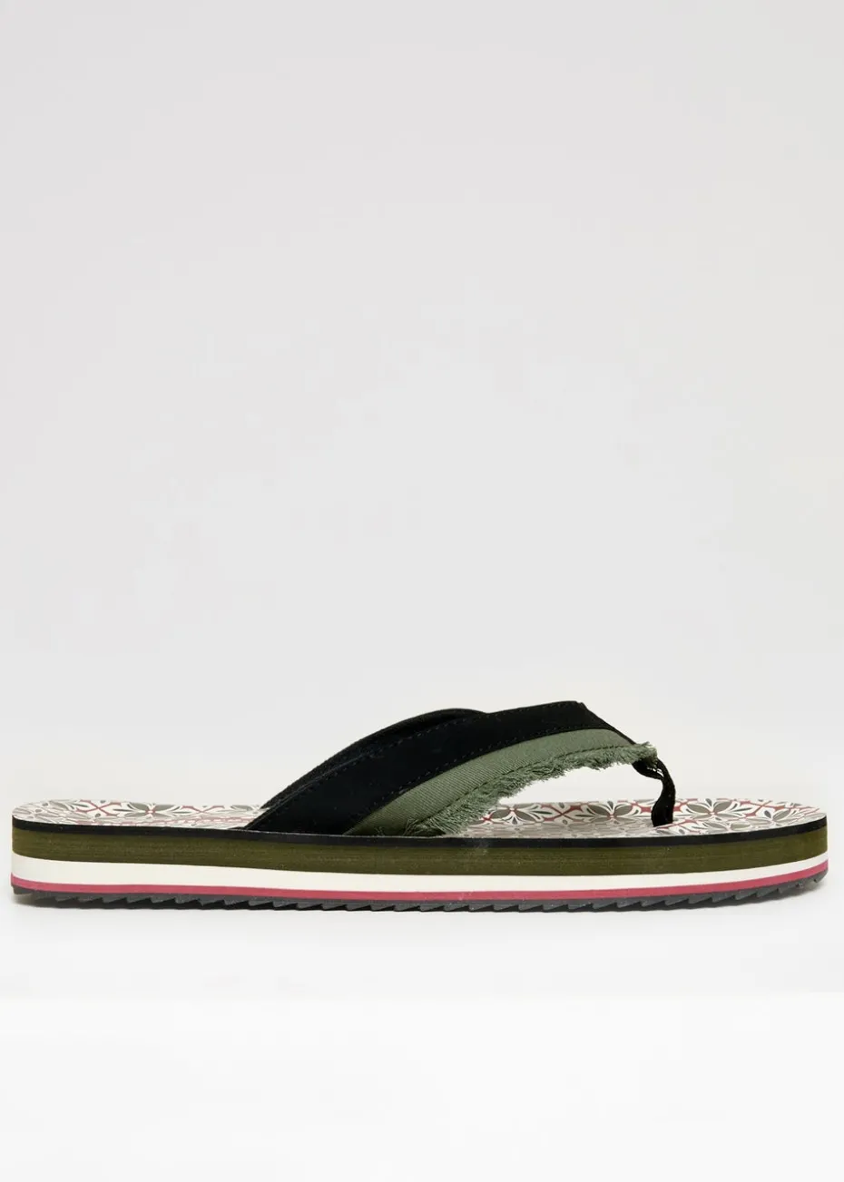Threadbare Khaki Fringe Detail Toe Post Sandals