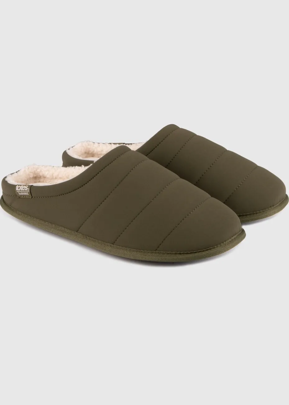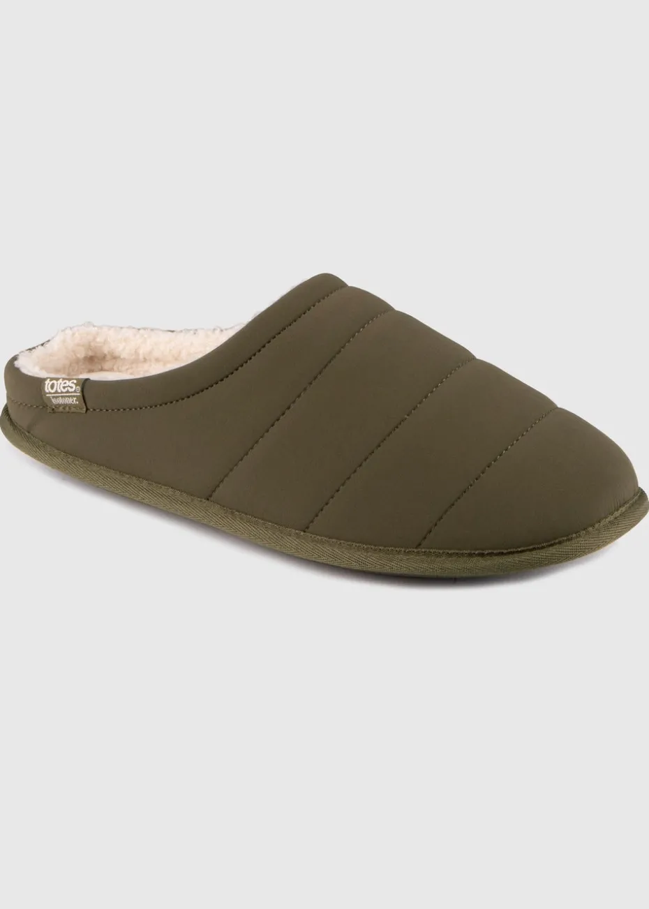 Totes Isotoner Khaki Sport Quilted Mule Slipper With Cosy Lining