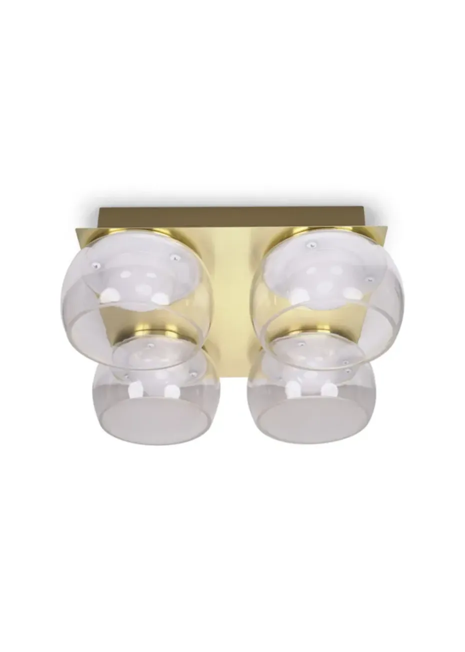 Introduce a contemporary element to your home décor with this four way ceiling light fitting. Suiting any living room, bedroom or bathroom this ceiling light features statement metal with glass shades. The integrated LED bulbs give off a warm white glow, perfect for creating a soft ambiance. With a perfect balance of style and functionality, this light brings a touch of modern sophistication to any space. Complete with Integrated LED bulb.