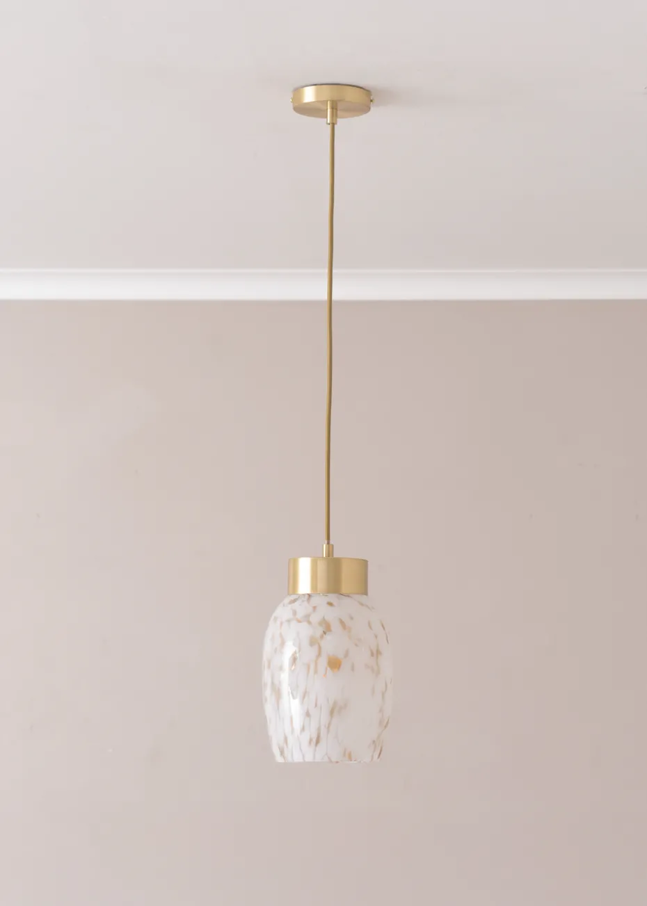 ValueLights India White Confetti Glass Shade Brushed Gold Capped Ceiling Pendant Light