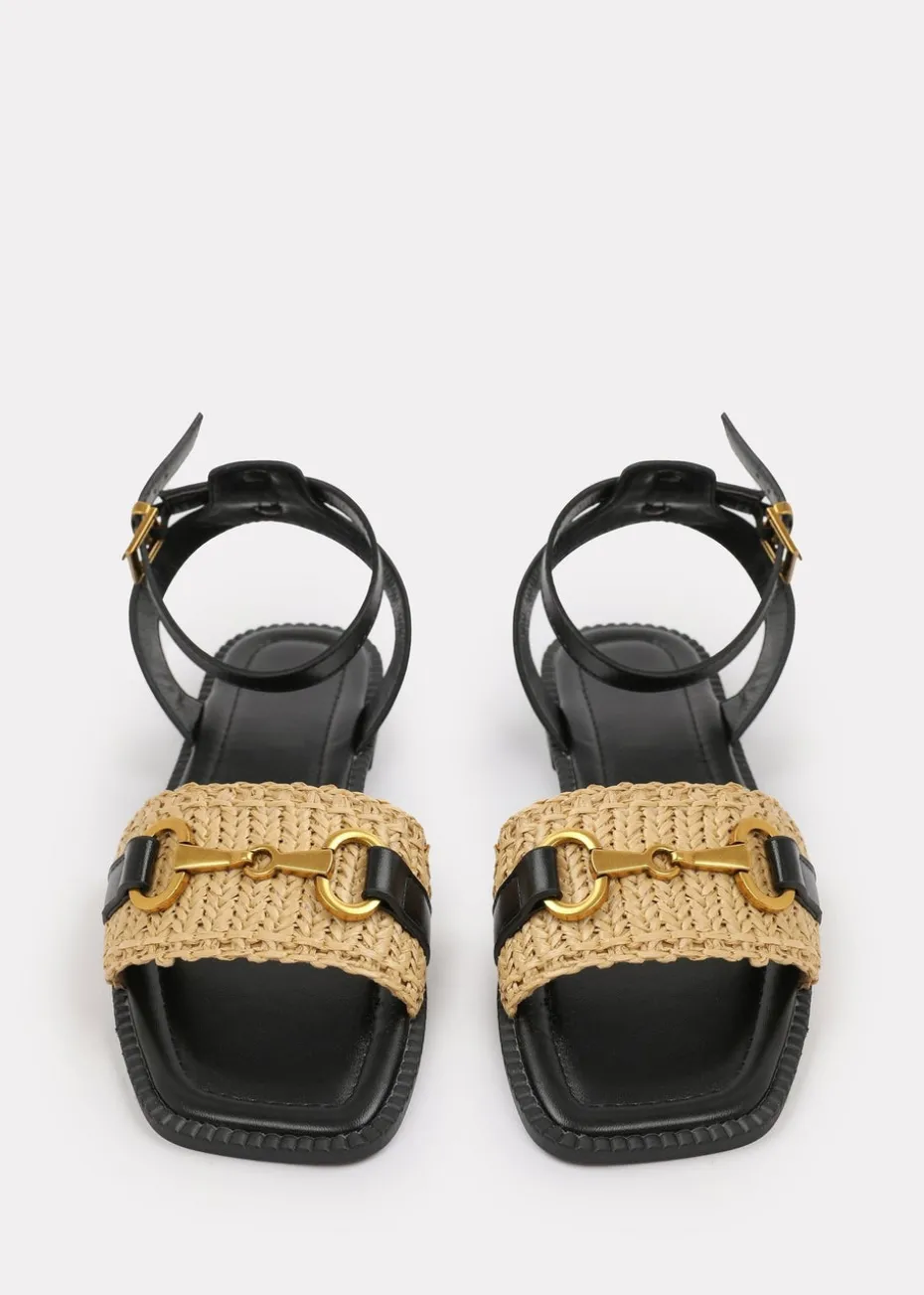 Introducing our Catelyn pu straw detail strap sandals with buckle closure. These sandals offer the perfect combination of style and comfort, making them an essential addition to your footwear collection.