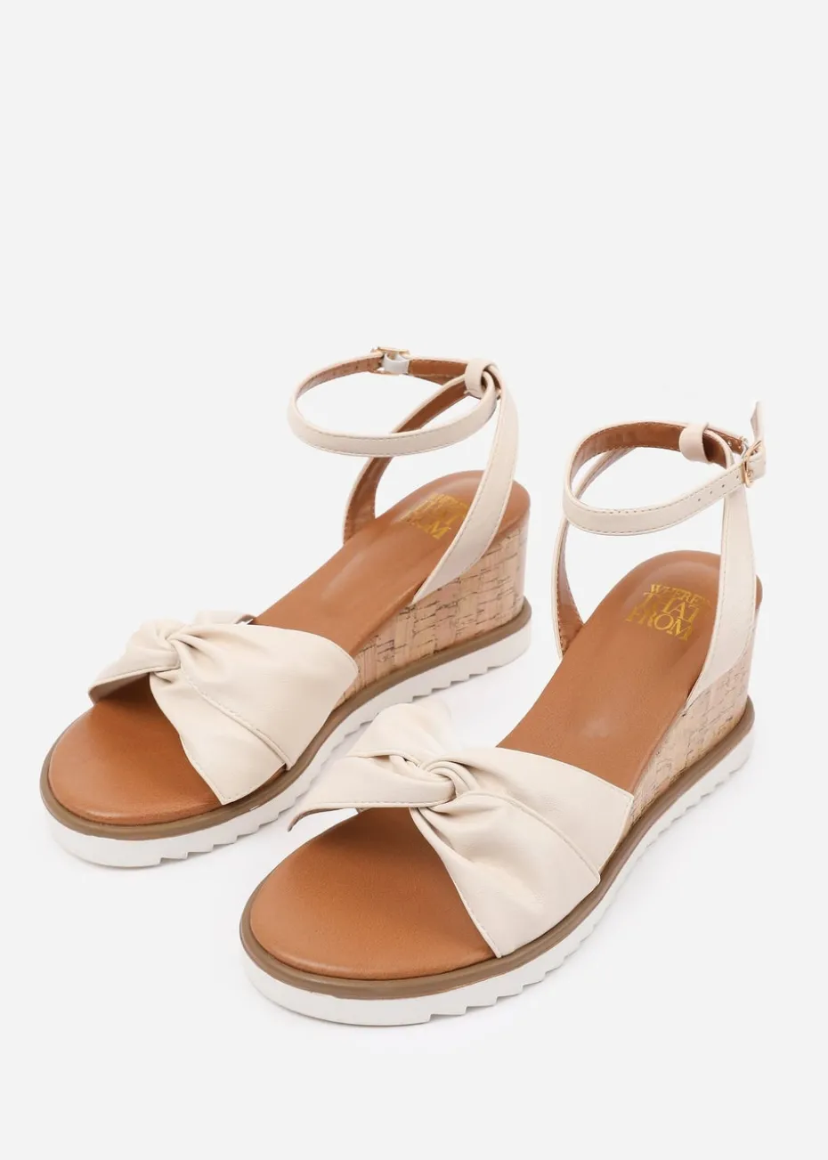 Where's That From Cream PU Katara Knot Detail Wedge Shoes