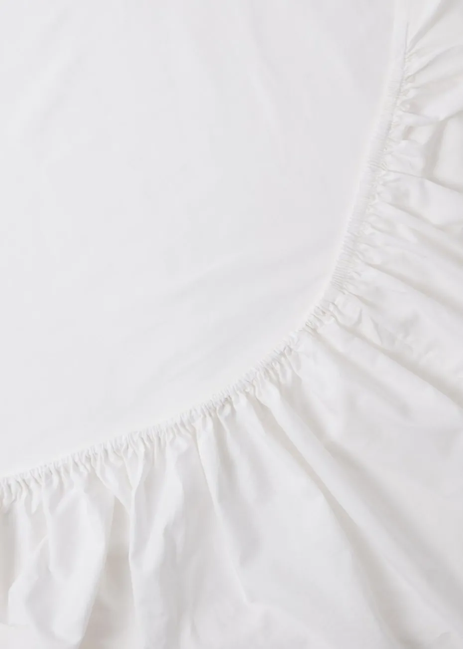 Crafted from high-quality cotton, this sheet is designed to accommodate extra-deep mattresses, providing a snug and secure fit. The crisp white hue adds a clean and elegant touch to your bedding, creating a serene and inviting atmosphere in your bedroom. With its soft and breathable fabric, it ensures a comfortable and relaxing sleep experience.