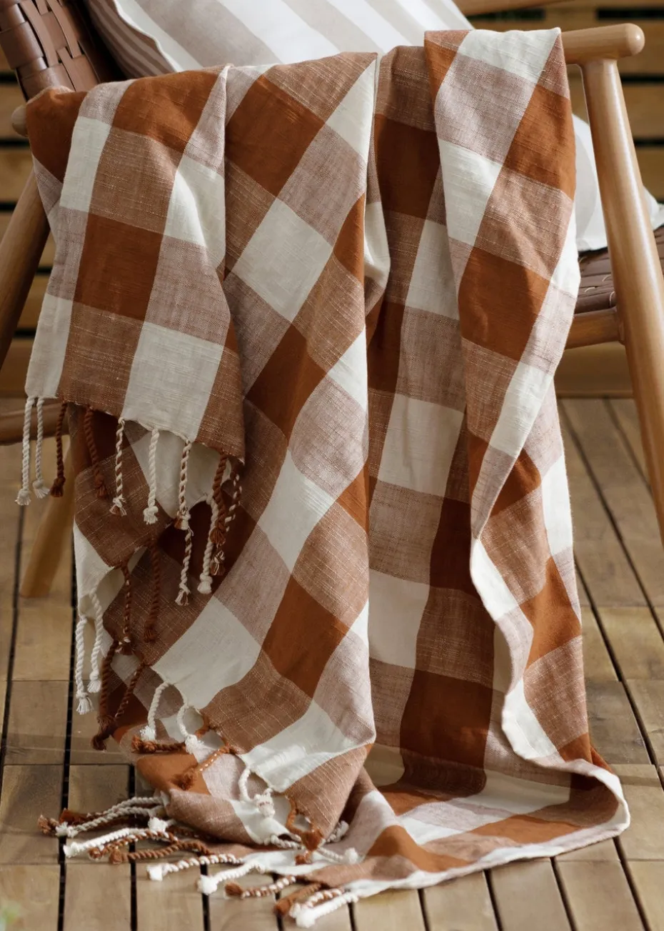 Yard Rust Chesil Check Tasselled 100% Cotton Throw