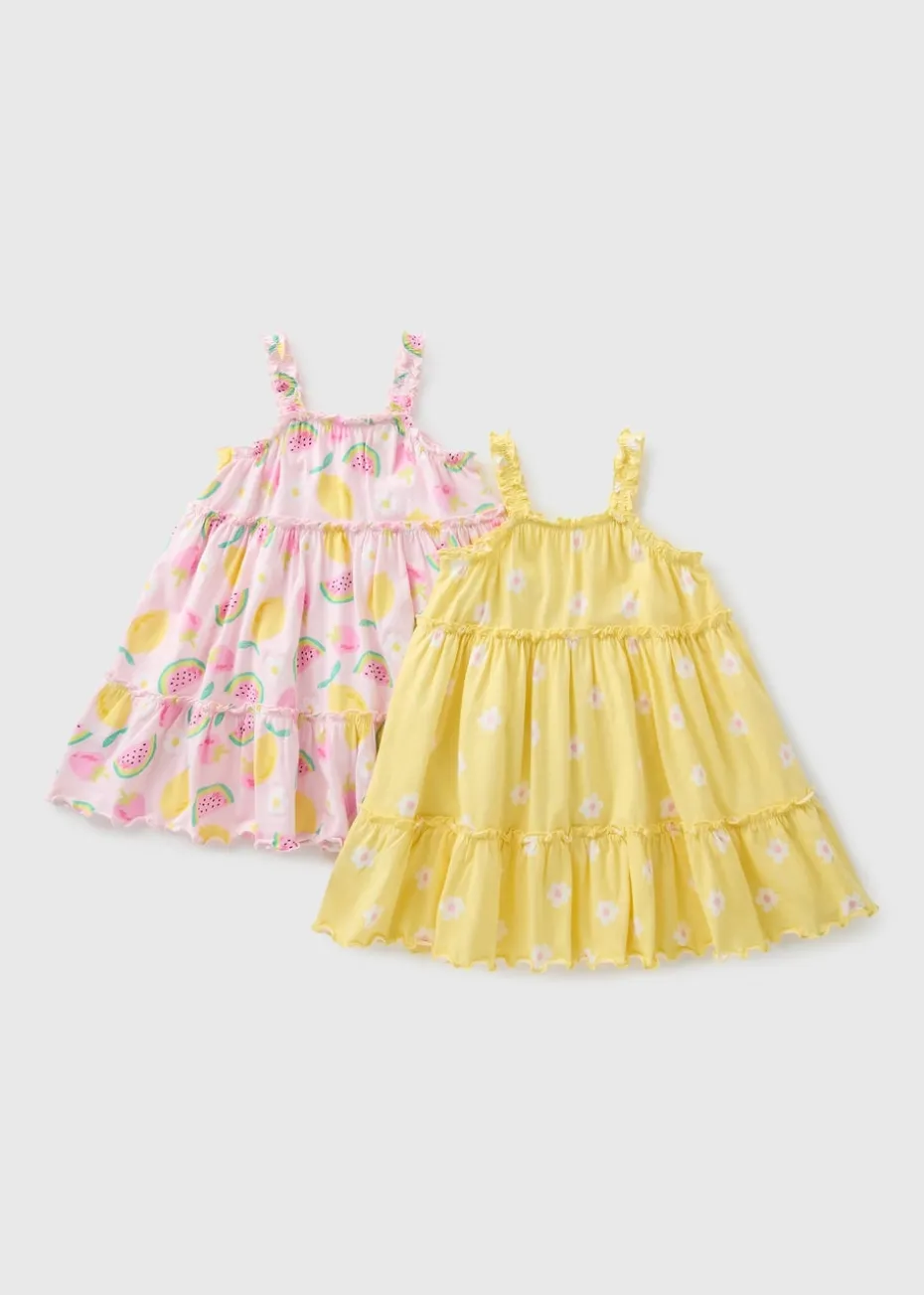 Brighten up her wardrobe with the 2 Pack Girls Tiered Frill Dresses, a stylish and comfortable piece perfect for any occasion. Featuring delicate frill trims for a charming touch, these dresses are made from soft, breathable fabric to keep her cool and comfy all day long. The vibrant yellow and pink hues adds a fun and fresh feel, making either dress ideal for parties, summer outings, or casual wear.