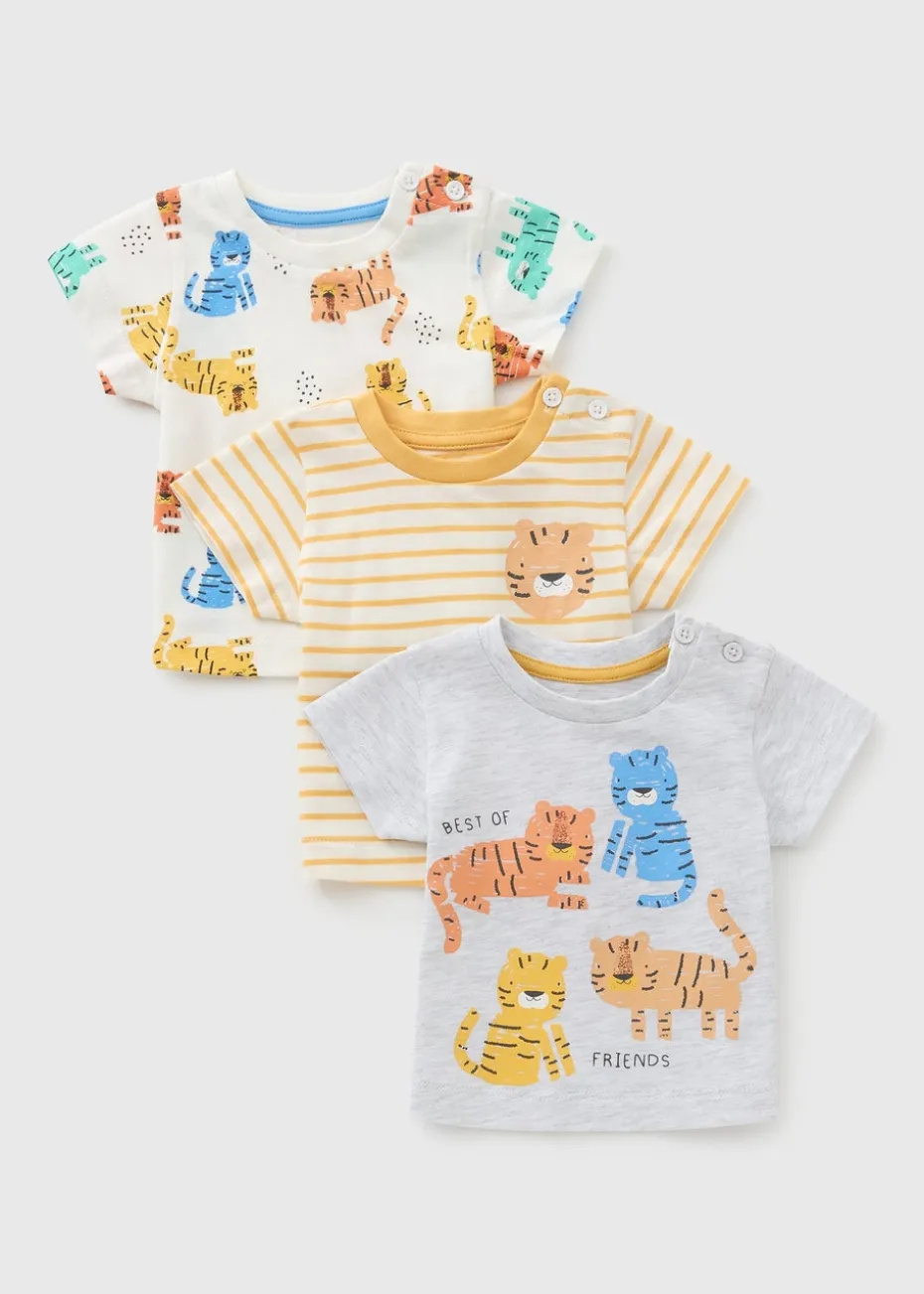 Get ready for an adventurous wardrobe upgrade with this 3 Pack of Baby Multicolour Safari T-Shirts. Featuring vibrant safari-themed prints, these tees are perfect for young explorers who love the wild side of life.