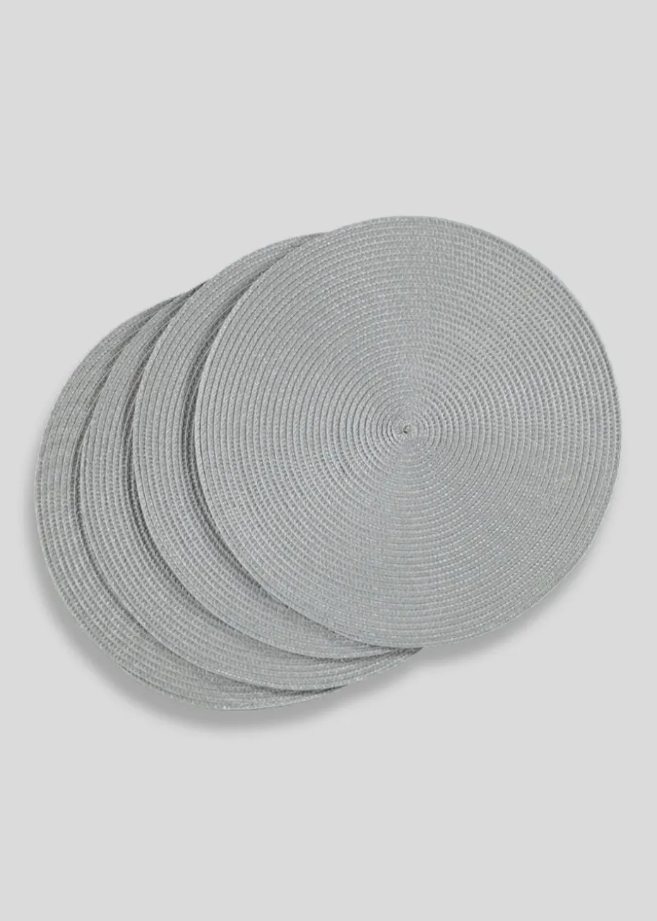 Finish your table setting with this four pack of woven placemats in grey. Wipe clean with a damp cloth. Not microwaveable.