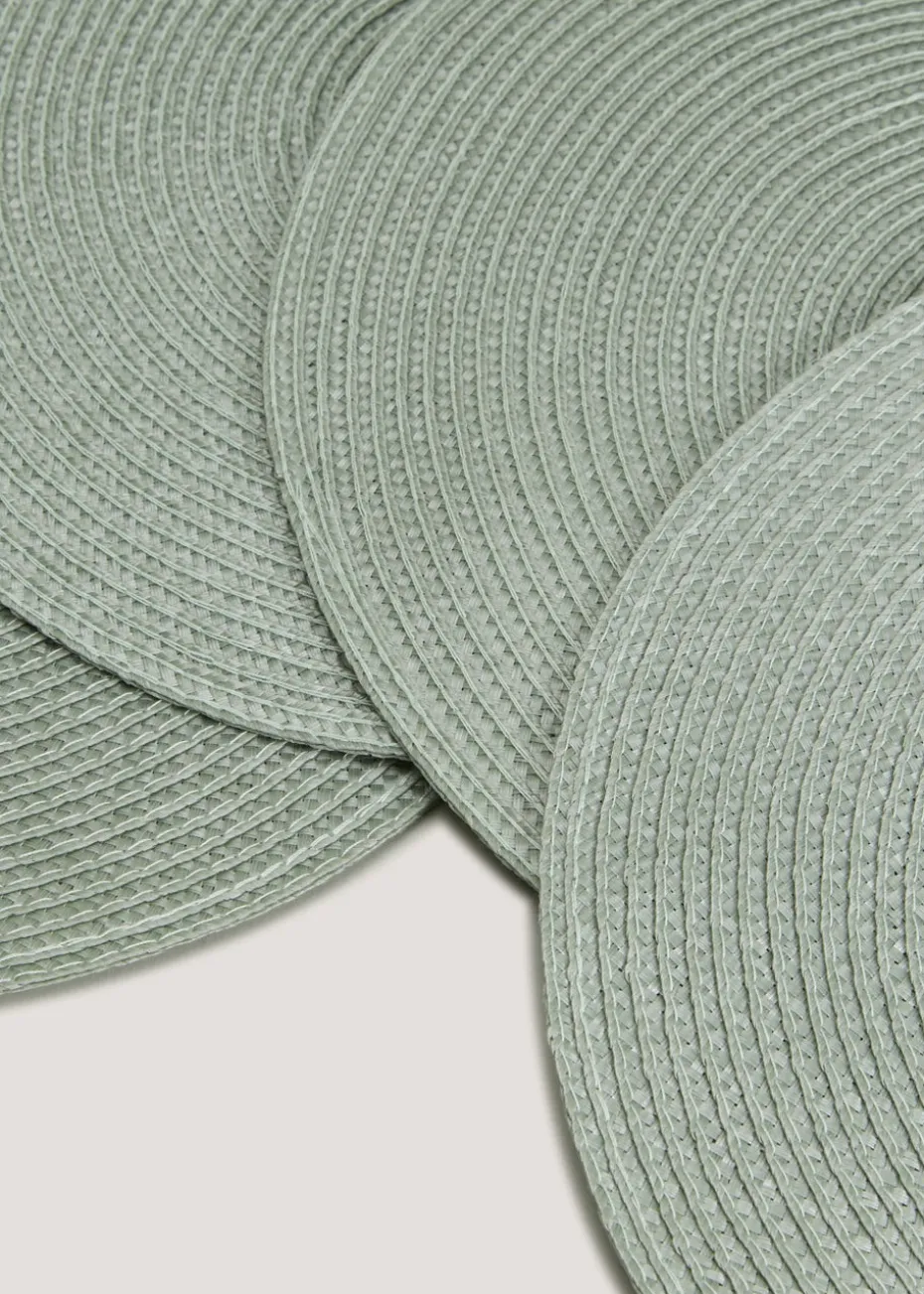 Finish your table setting with this four pack of woven placemats in iceberg green. Wipe clean with a damp cloth. Not microwaveable.