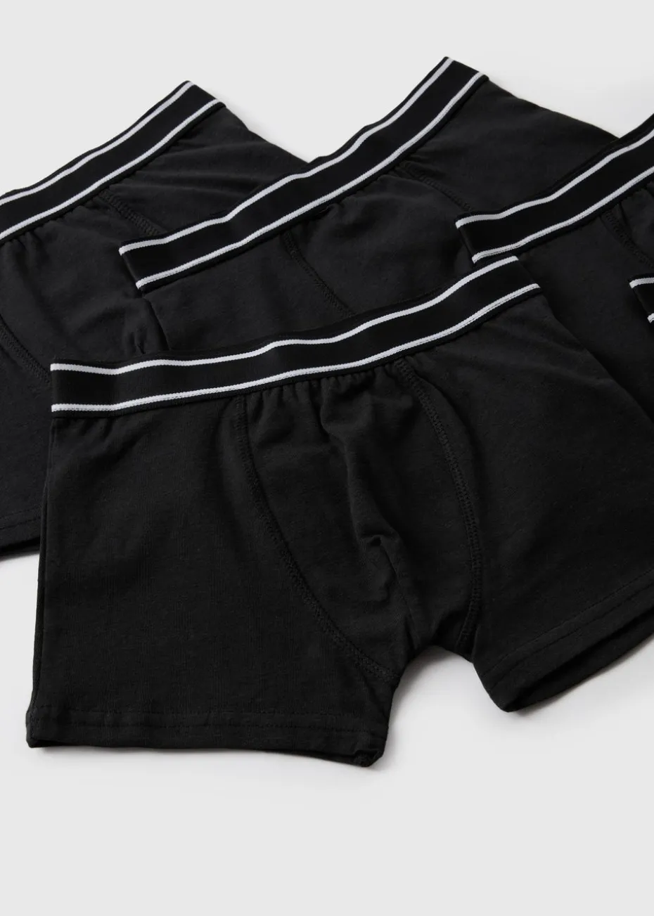 Refresh your essentials with this 5 Pack of Boys Black Trunks. These hipsters offer a sleek and modern look, featuring a classic black design complemented by a stylish stripe white waistband that adds a touch of contrast and flair. Perfect for everyday wear, these trunks combine comfort and style seamlessly.