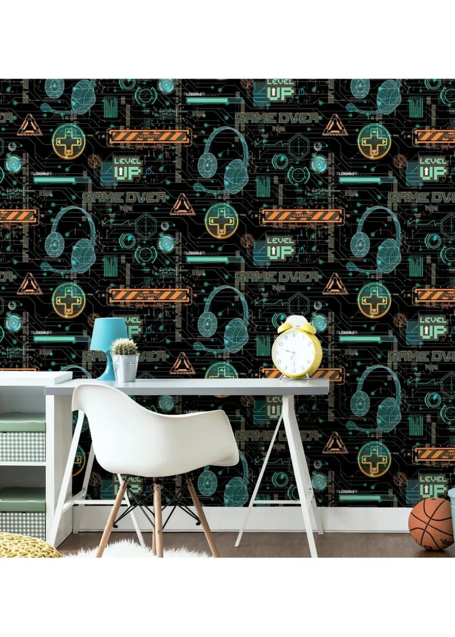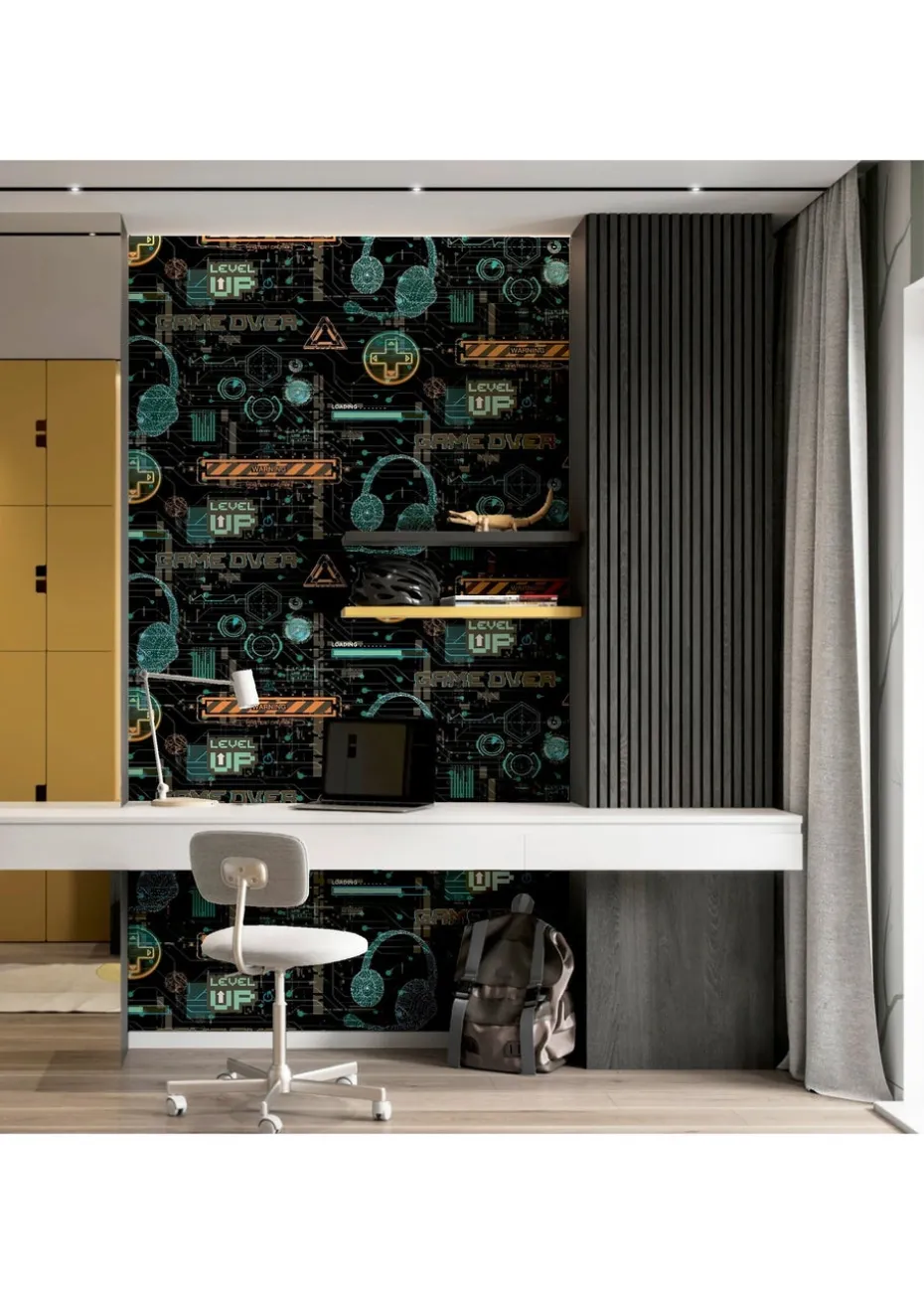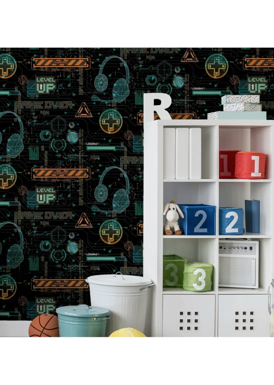 Bring a gamers imagination to life with this video glitch wallpaper. This design features gamer style graphics and neon style signs in multiple colours throughout. This wallpaper is perfect for any gamer in your home and has a matrix inspired vibe to it. Perfect for boys’ rooms, play rooms, dens or even offices. Hanging Method: Paste the Paper Pattern Match: Off Set 26.5cm Pattern Repeat: 53cm