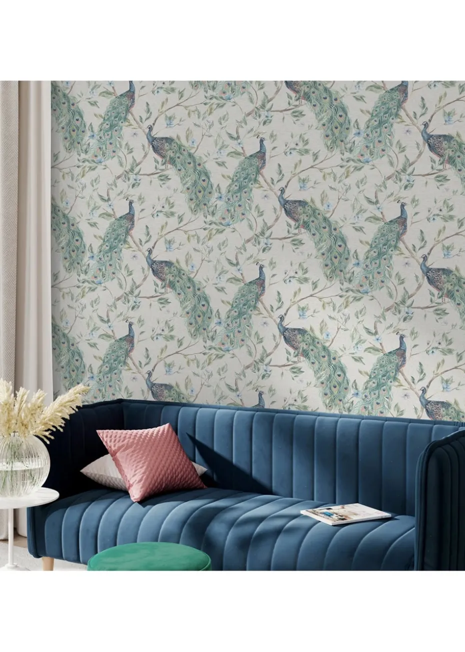 Classy and ornate design, Keeka Bird features elegant peacocks with delicately designed feathers, intertwined with timeless florals. The wallpaper design is set on a fashionable neutral cream and the peacocks have metallic highlights to really lift the design. A great wallpaper that will look perfect as a feature wall or on all four walls, hung in any room it will surely make a statement. Hanging Method: Paste the Paper Pattern Match: Off set 26.5cm Pattern Repeat: 53cm