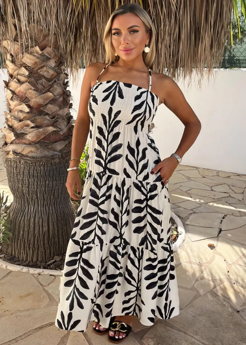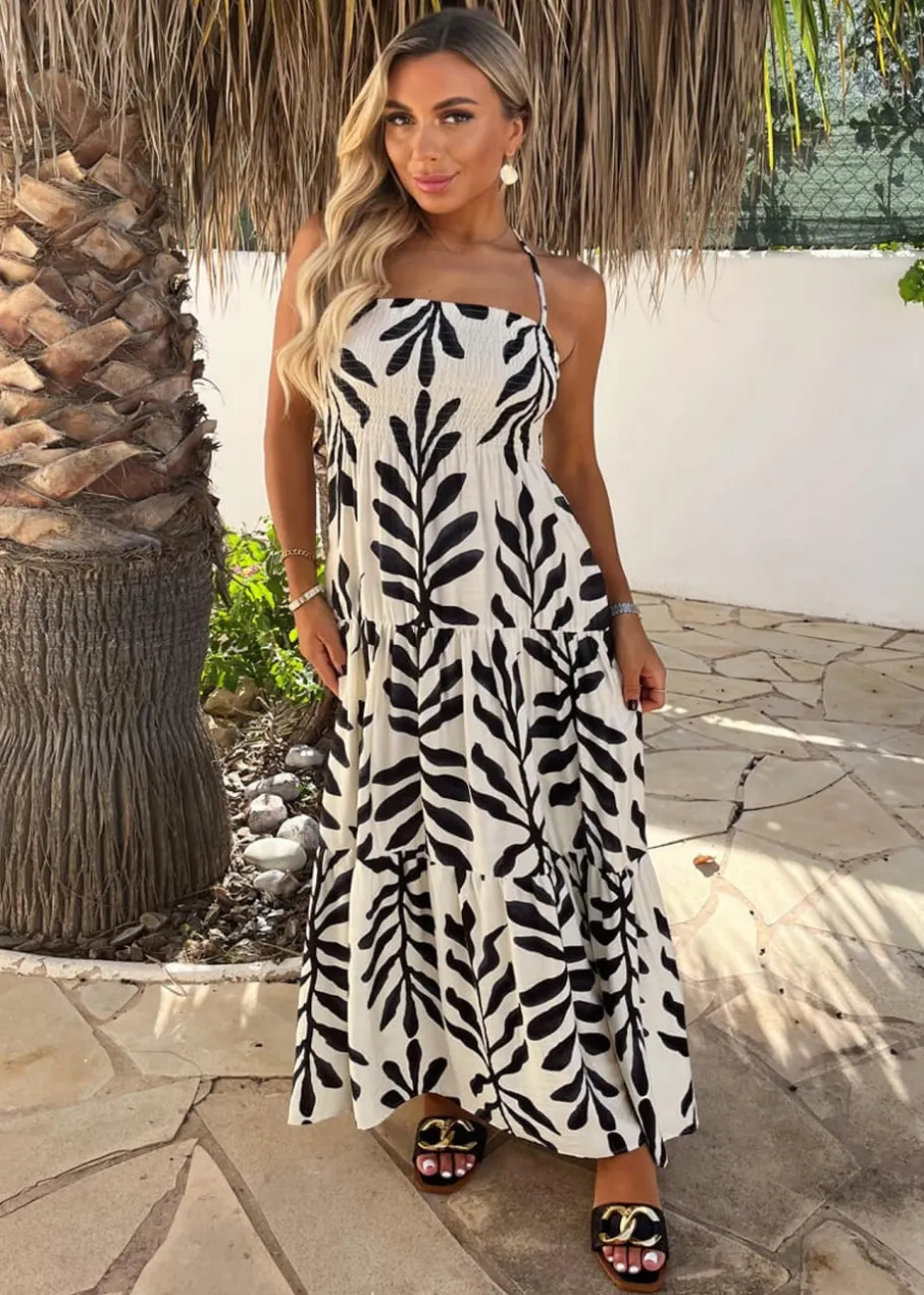 Be the first to review “AX Paris Black & White Leaf Print Tie Neck Shirred Top Smock Midi Dress” Cancel reply
