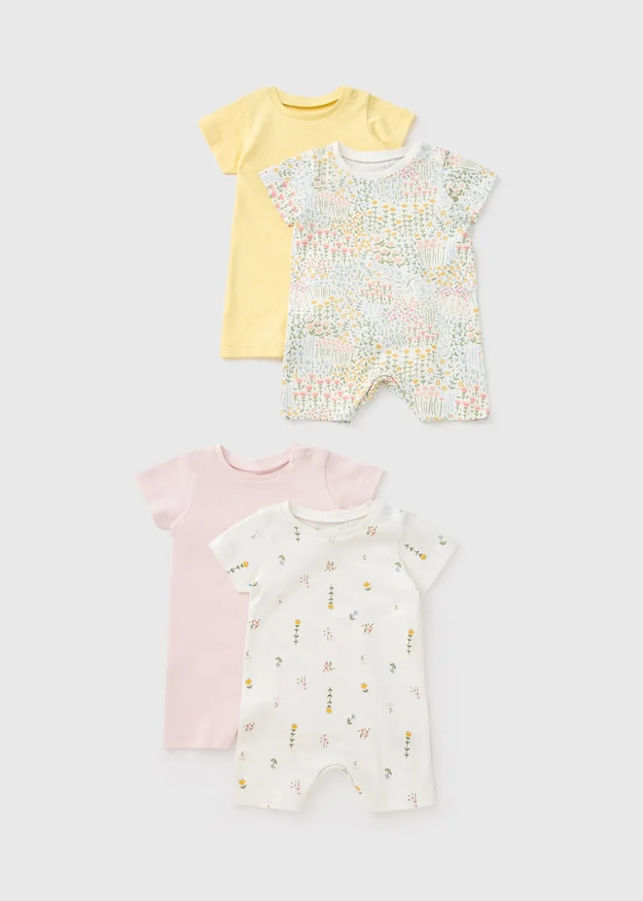 Our vibrant 4-pack of rompers is a must-have for your little girl’s summer wardrobe. Made from a soft and durable cotton blend, these rompers will keep your child comfortable all day long. The assortment of cheerful floral prints adds a touch of charm to any outfit.