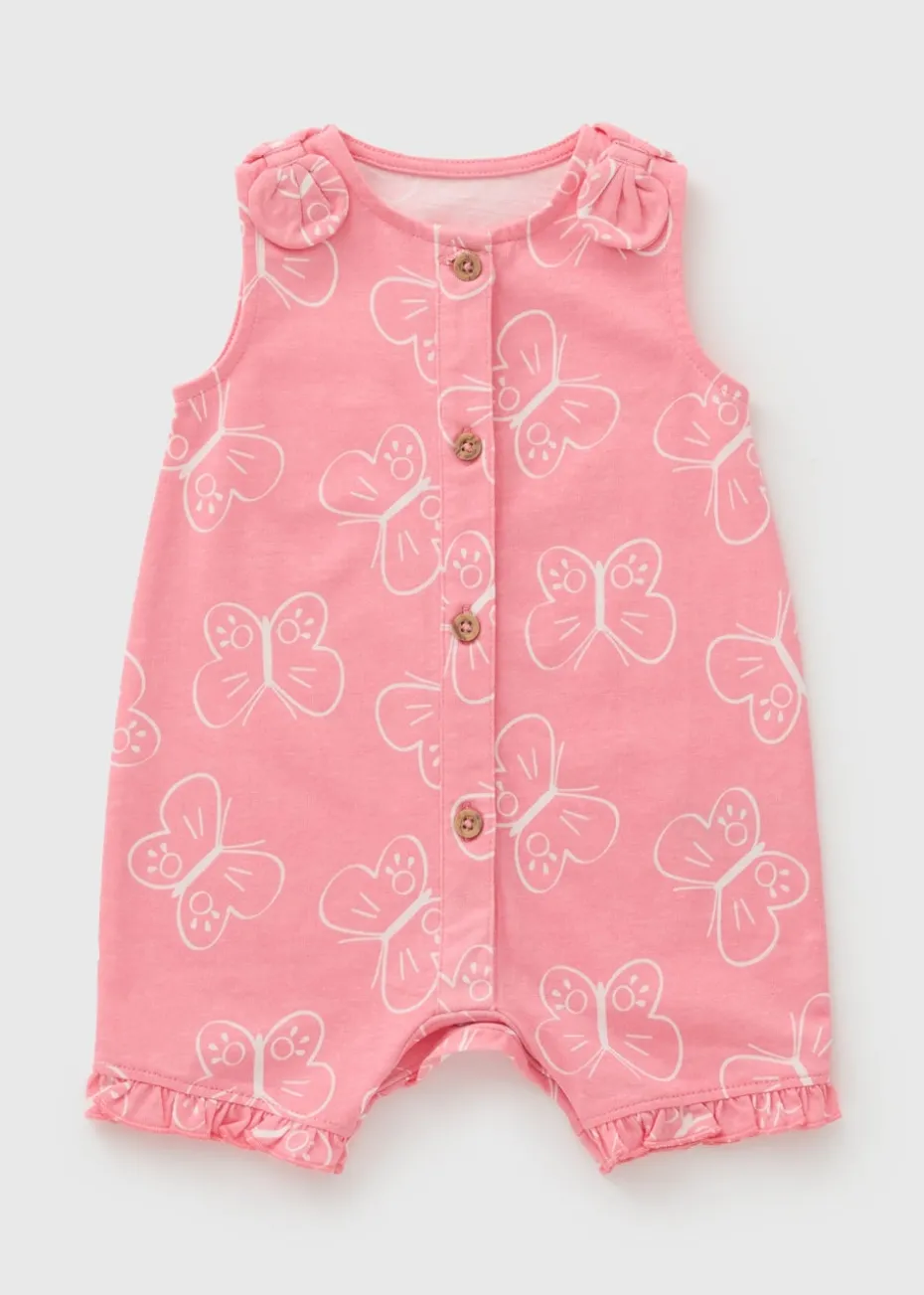 Your little one will look adorable in this sweet and stylish Pink Butterfly Romper. Made from 100% cotton, this romper features a fun all-over butterfly pattern,.
