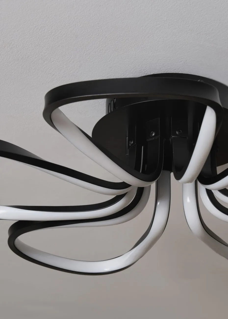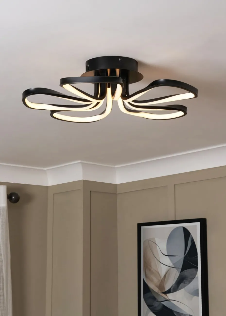 The BHS Alvar 5 Petals LED Flush Ceiling Light combines modern design with efficient lighting, making it a stylish and functional choice for contemporary interiors. Featuring a unique petal design in a sleek Satin Black finish, this flush ceiling light offers both aesthetic appeal and practical illumination. Height 13cm x Width 50cm. Integrated LED lighting.