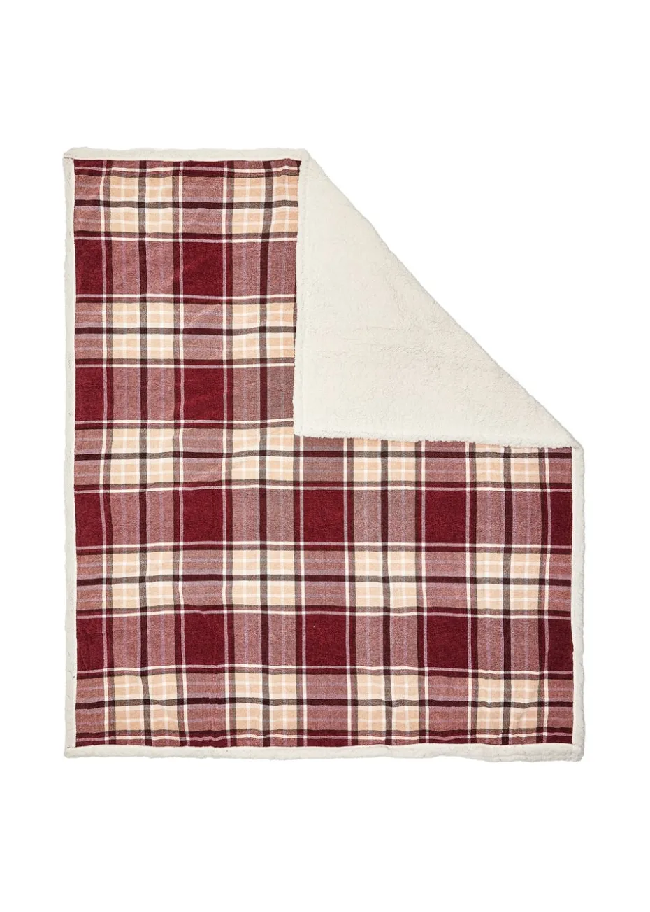 BHS Luxury Warm Red Check Throw With Faux-Shearling (130x150cm)