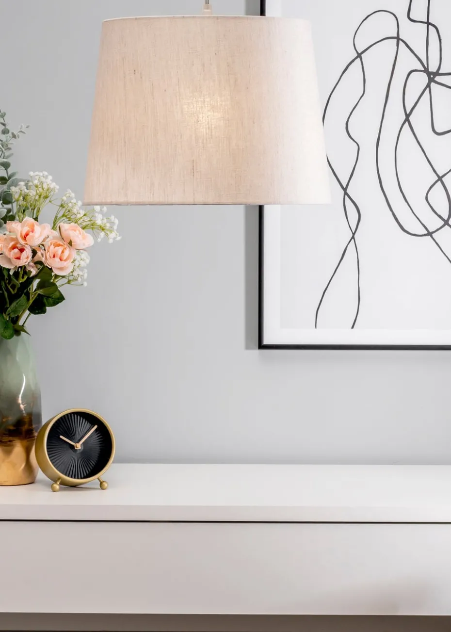 The BHS Mira 25cm Linen Easyfit Shade in Natural offers a timeless and elegant touch to any room. This tapered shade provides a soft, diffused light that enhances the warmth and ambiance of your space. The easyfit design ensures quick and effortless installation on existing fixtures, making it a practical and stylish upgrade for living areas, dining rooms, or bedrooms Height 19cm x Width 25cm