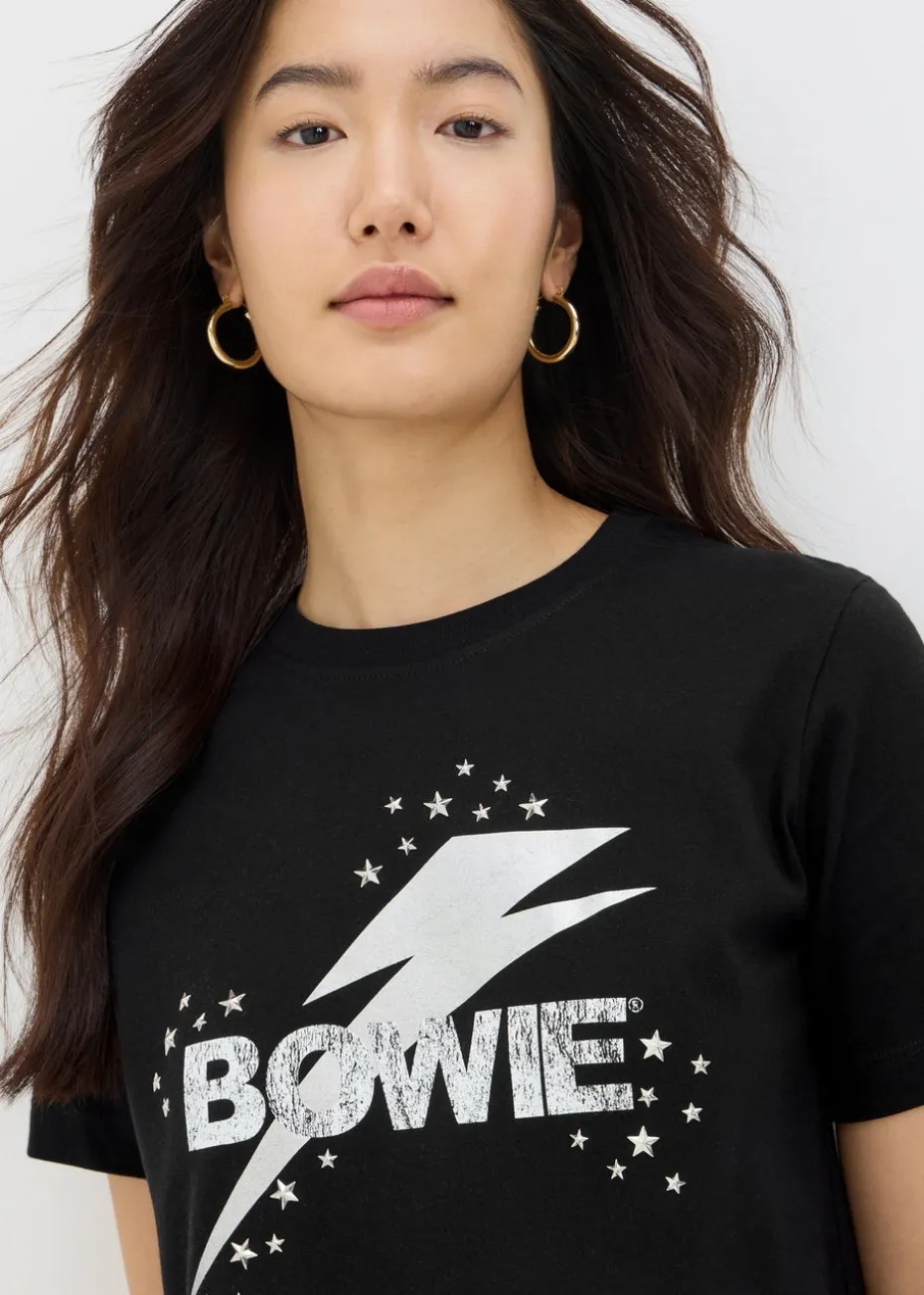 Channel rock ānā roll energy with the Black Bowie T-Shirt, a must-have for music lovers and fashionistas alike. Featuring an iconic Bowie graphic, this tee adds an effortlessly cool vibe to any outfit. The classic black hue makes the design pop, while the relaxed fit and soft fabric ensure comfort all day long.