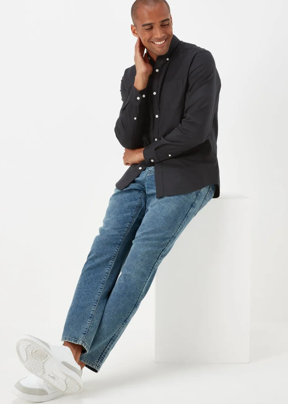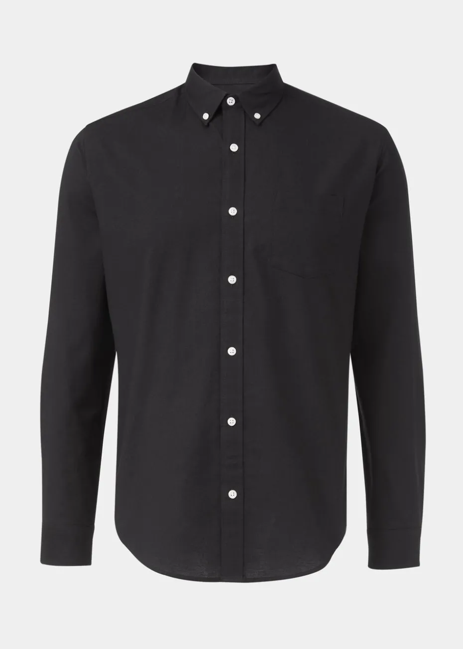 Whether you’re dressing smart or casual, our Oxford shirt is an essential addition to any man’s wardrobe. Made from soft cotton in a relaxed regular fit for comfort and easy movement, our new updated style comes in black with a neat buttoned collar and a chest pocket detail for a classic finish. Model Height: 6ft 1/2.