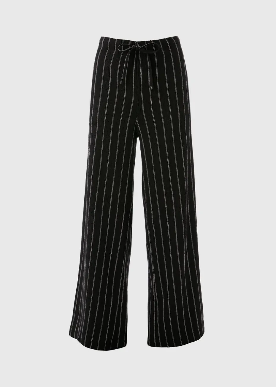 These Pin Stripe Co Ord Wide Leg Trousers in black are perfect for creating a stylish and on-trend look. Made from a comfortable and stretchy jersey fabric, they feature a flattering wide-leg cut and a stylish pin stripe detail. The all-over stripe pattern adds a touch of interest, while the elasticated waistband ensures a comfortable fit.