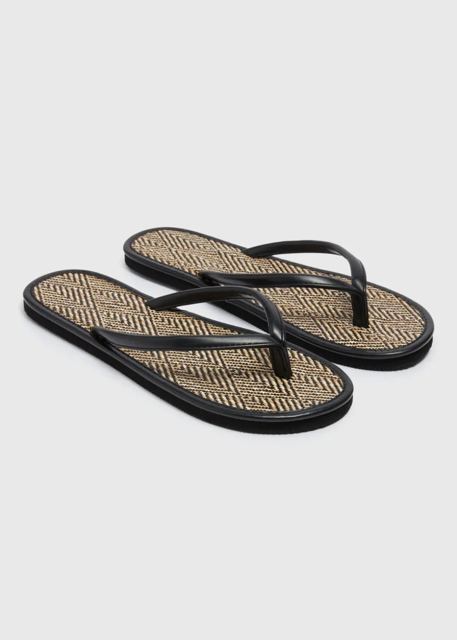 Step into summer with these chic black raffia flip flops, featuring a textured woven design and lightweight feel. Perfect for beach days or casual strolls, they add a classic touch to any warm-weather look.