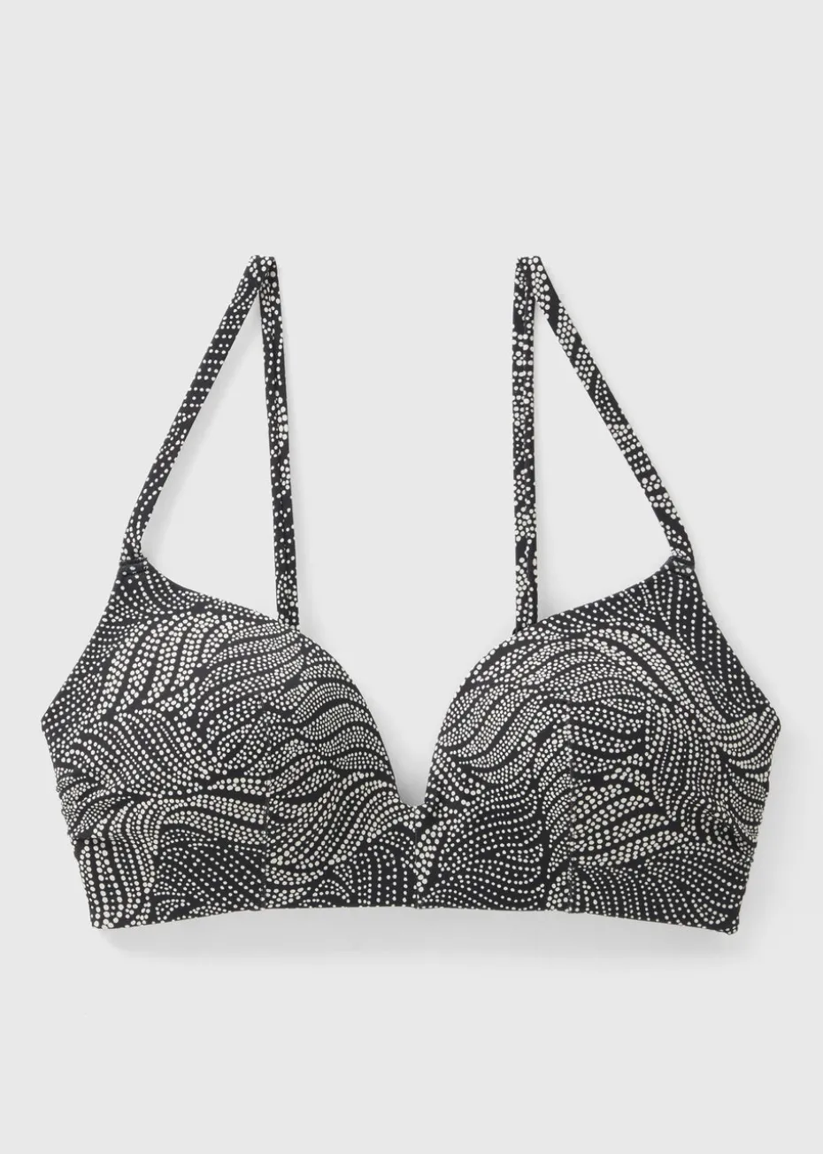 Dive into the season in style with our black spot comfort bikini top. This eye-catching top features a beautiful spot print that creates a beautiful pattern for your holiday looks. With its flattering comfort mould design and padded bra, you’ll feel comfortable and confident all day long with 2 straps to ensure a secure fit. Whether you’re lounging by the pool or catching some waves, this bikini top will keep you looking and feeling your best.