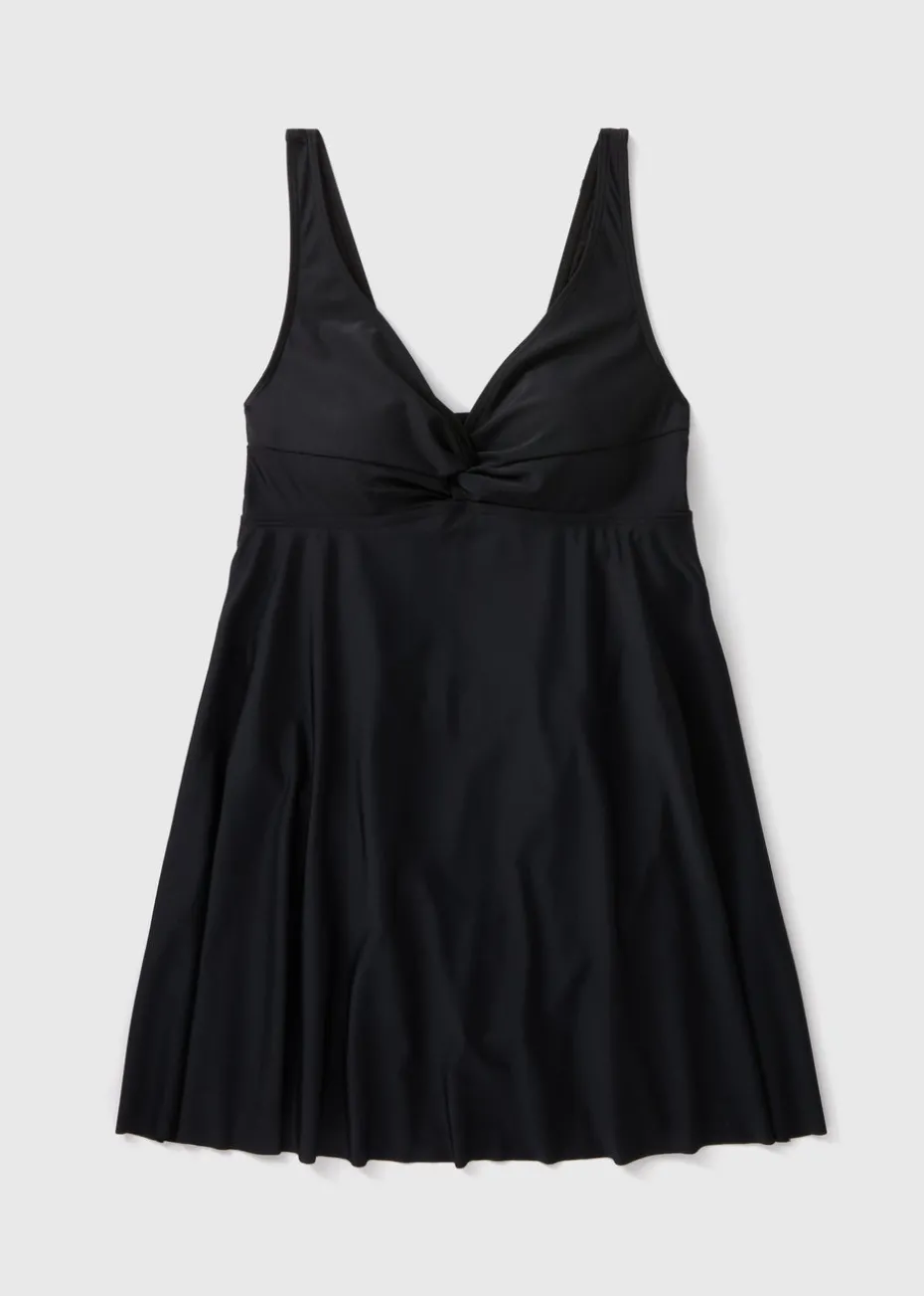This elegant black swimdress is perfect for your next seaside escape. It’s designed to flatter every figure, with its flattering scoop neckline and covering swimdress style for a confident wear. The fabric is soft and comfortable for a whole day by the pool or beach, making it ideal for packing for your holiday. The twist front detailing adds a touch of style while the padded cups ensure a secure and comfortable fit. This swimdress is perfect for your poolside adventures.