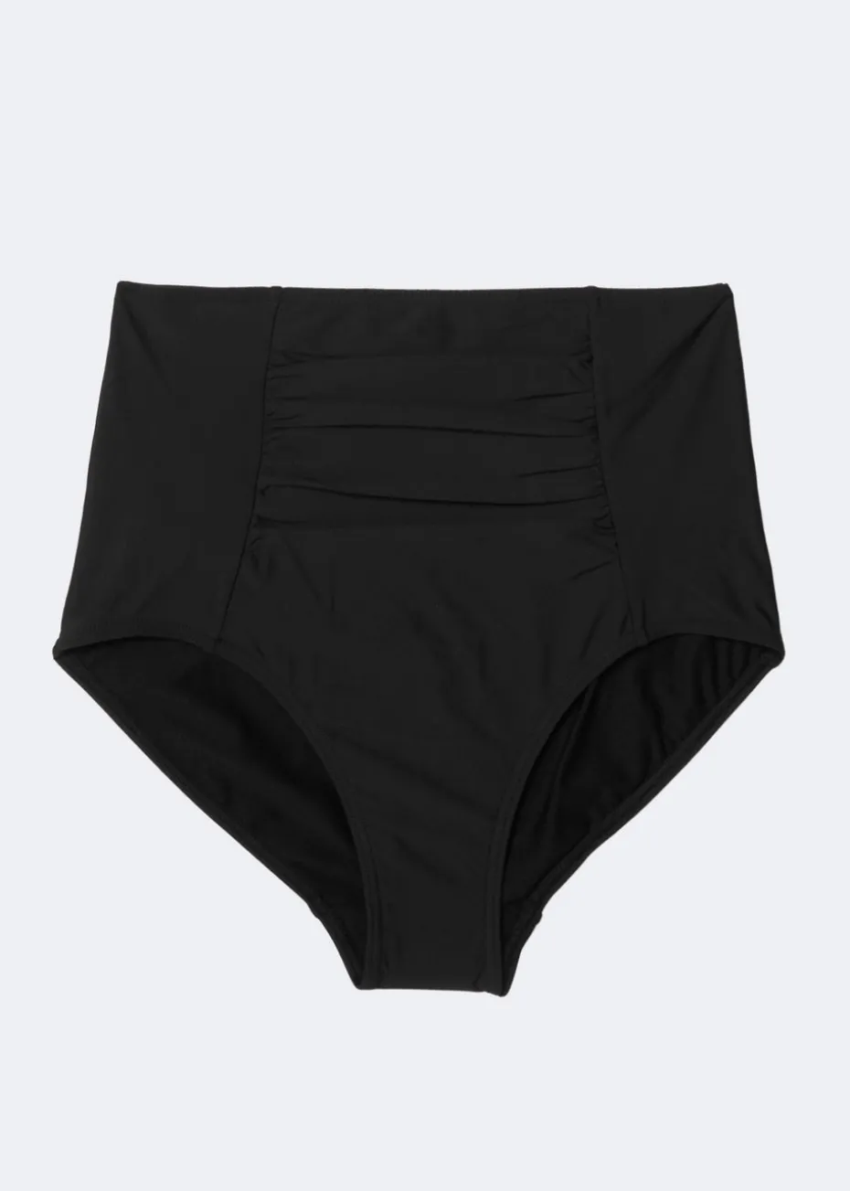 These classic black bikini bottoms will have you feeling confident and looking fabulous at the beach or pool. Designed with clever shapewear technology, ruched tummy control panelling and a flattering high waisted fit will streamline your figure. Pair with the matching top S2759029_C101 for a flattering finish. Model Height: 5ft 9.
