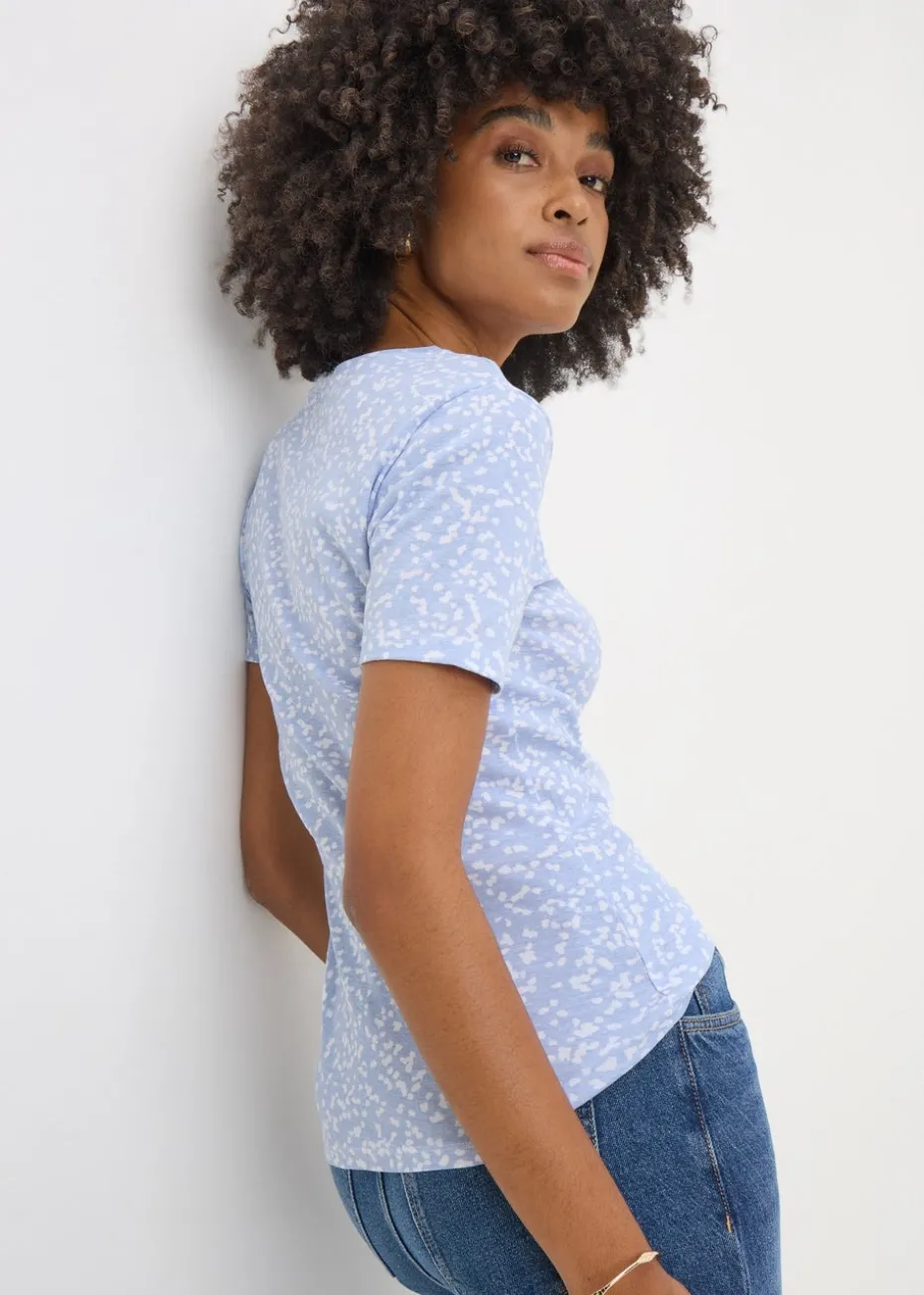 Look effortlessly stylish in our blue spot fitted t-shirt, a must-have addition to your casual wardrobe. This versatile top features a beautiful and eye-catching print, perfect for adding a pop of colour to your everyday look.