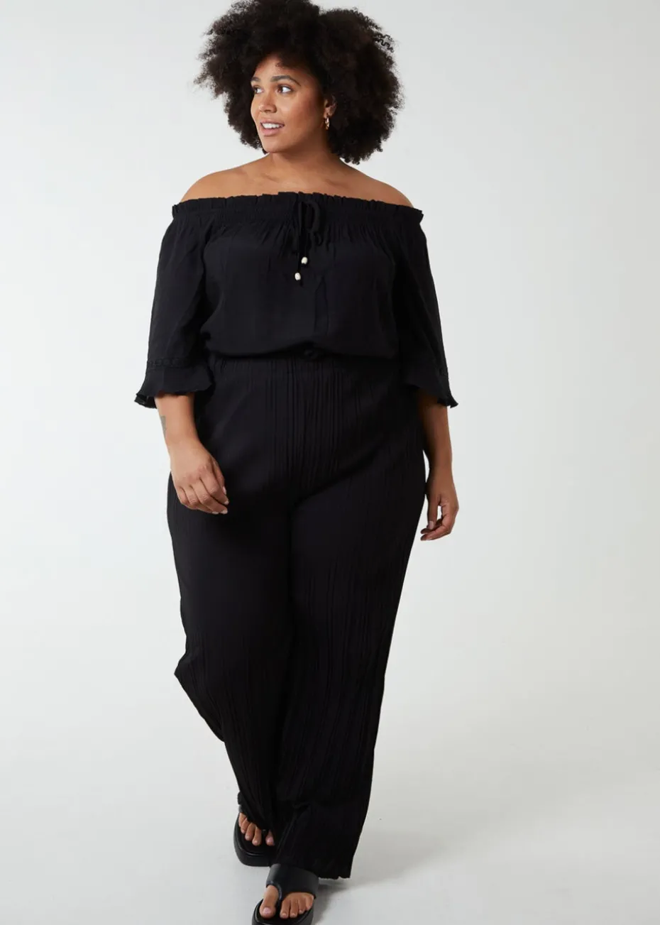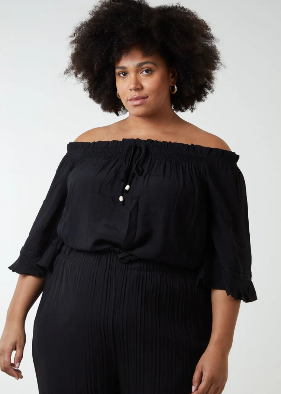 Blue Vanilla Black Curve Bardot Tie Front Top