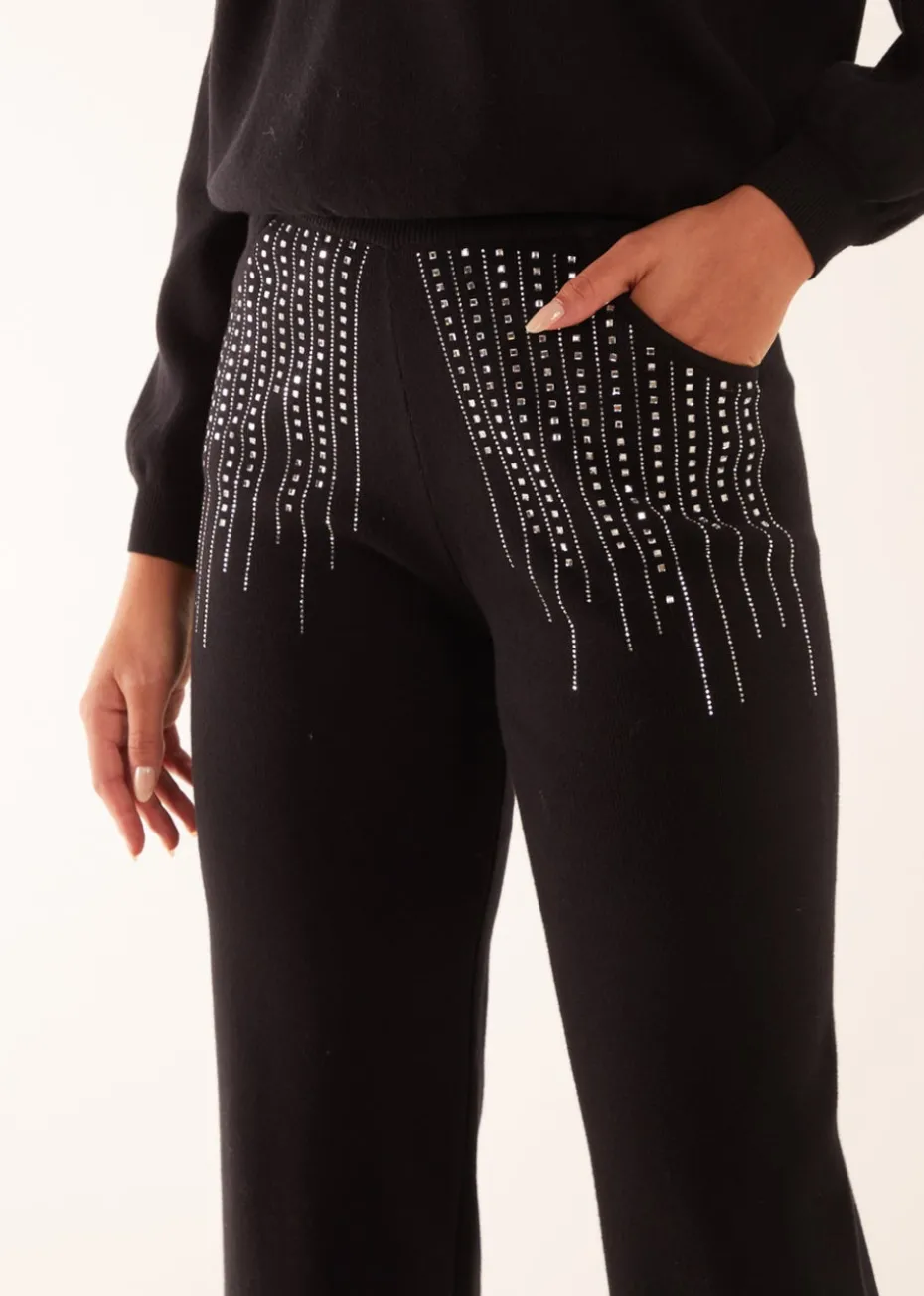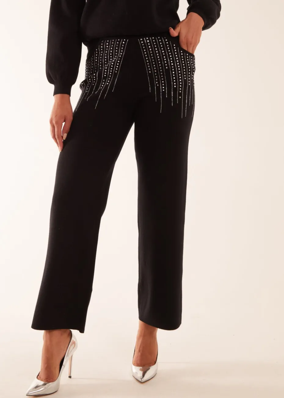 Blue Vanilla Black Diamante Knitted Flared Trousers