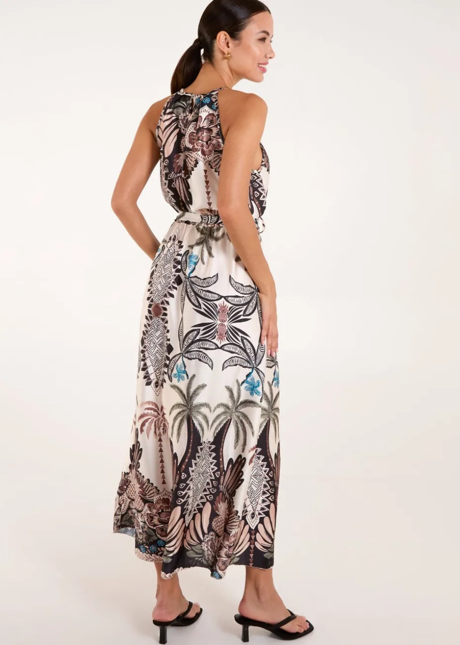 Embraces the timeless appeal of this classic neckline while adding a contemporary twist to elevate your style with this satin print. Team this dress with strappy heels.