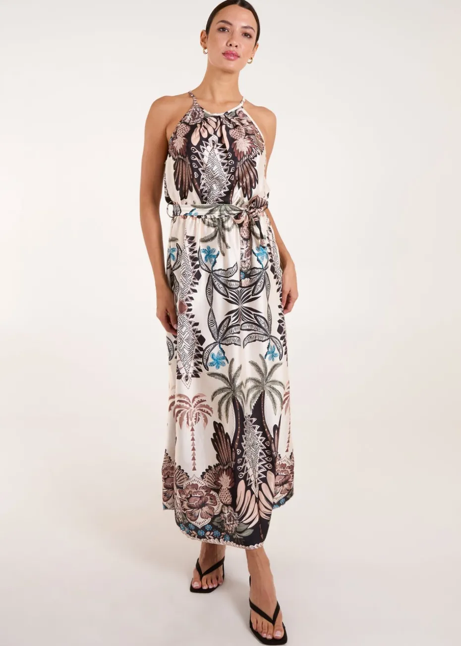 Be the first to review “Blue Vanilla Black Halter Neck Satin Belted Midi Dress” Cancel reply