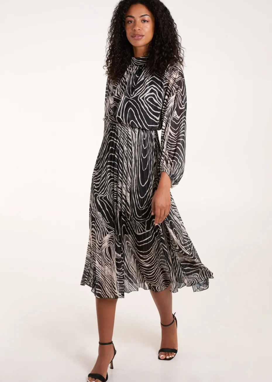 Girl get ready to strut your stuff in this high neck midi dress. Every fashionable woman needs to have at least one pleated item in their wardrobe . Add some lace up heels and gold hoops for a luxe look.