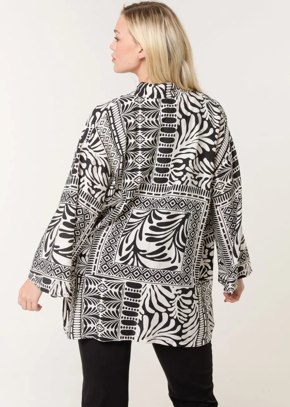 Blue Vanilla Black Kimono With Geometric Print