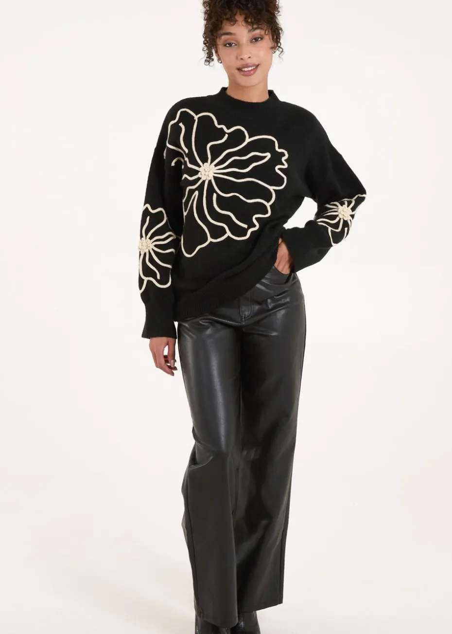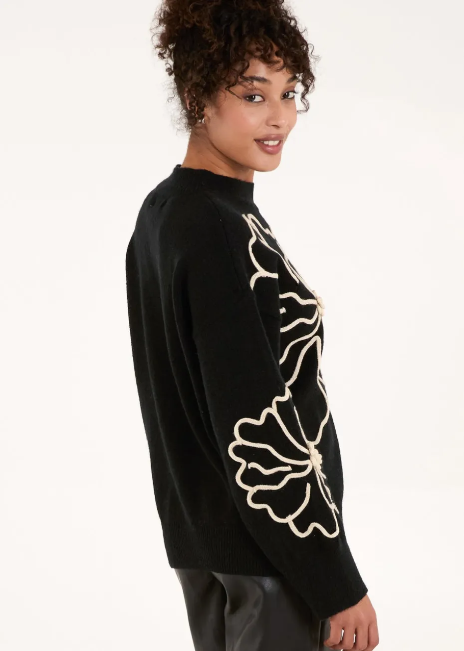Blue Vanilla Black Large Flower Embroidery Jumper