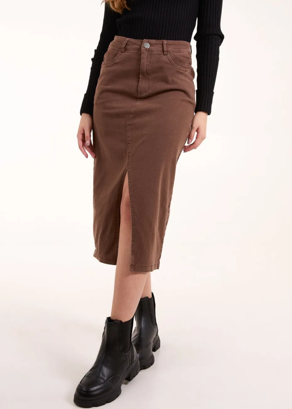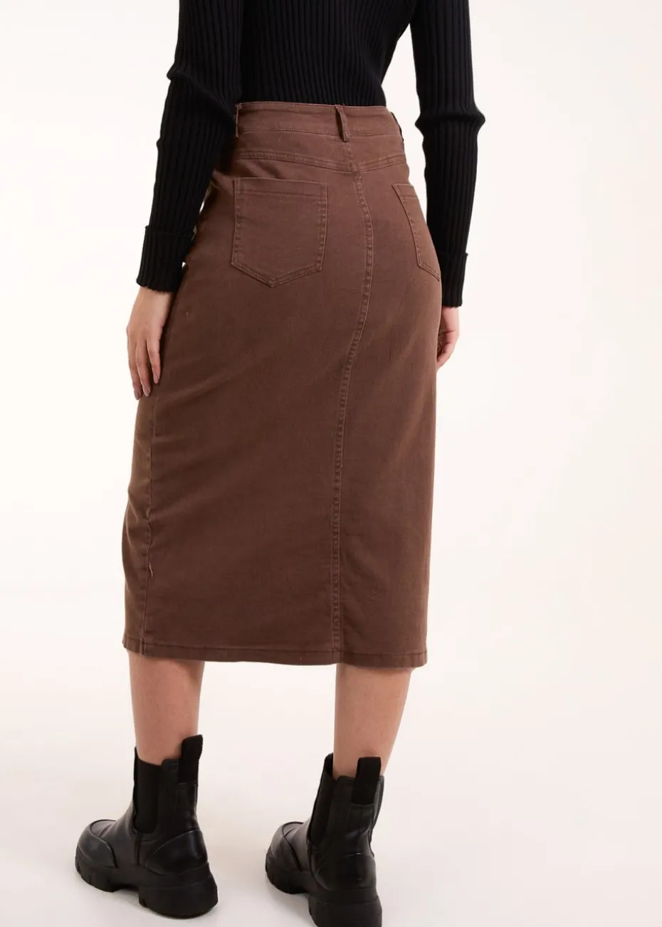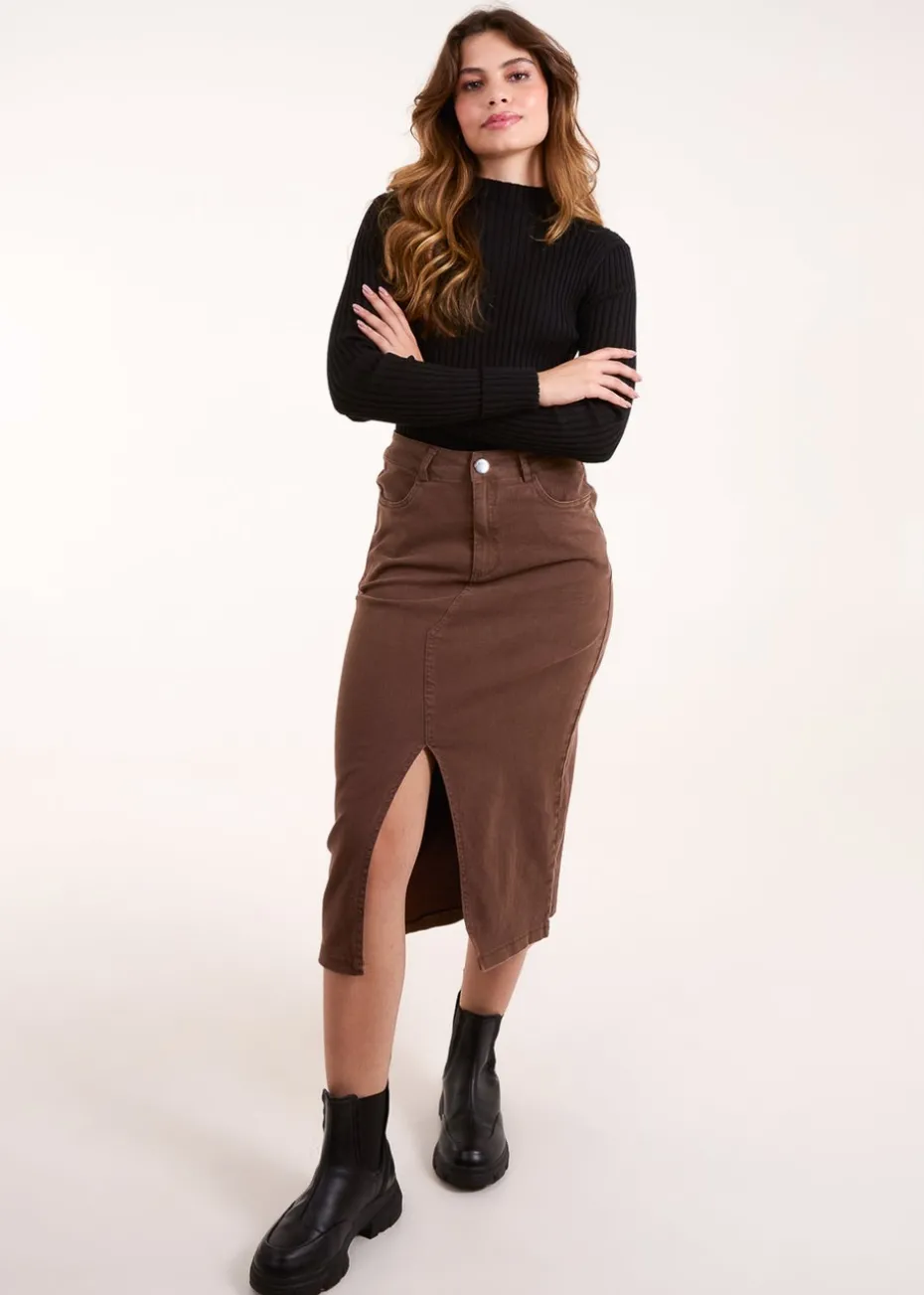 Blue Vanilla Brown Acid Wash Denim Mid Skirt