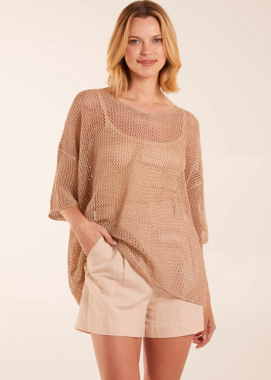 Get ready for blue skies and happy days in the sun! This metallic crochet top is the perfect cover-up for your next summer holiday to the beach!