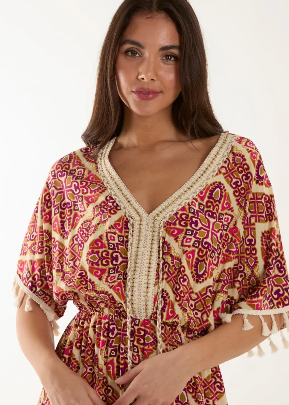 Say hello to the most elegant dress of the season! With its aztec print, to its tassels. This dress screams boho vibes! Team with gladiators and be ready for whatever plans you have this weekend!