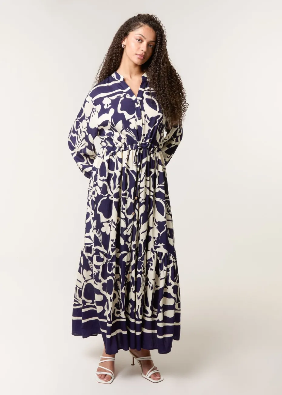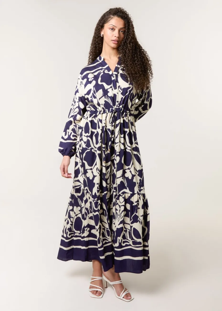 Blue Vanilla Navy Abstract Floral Print Maxi Dress