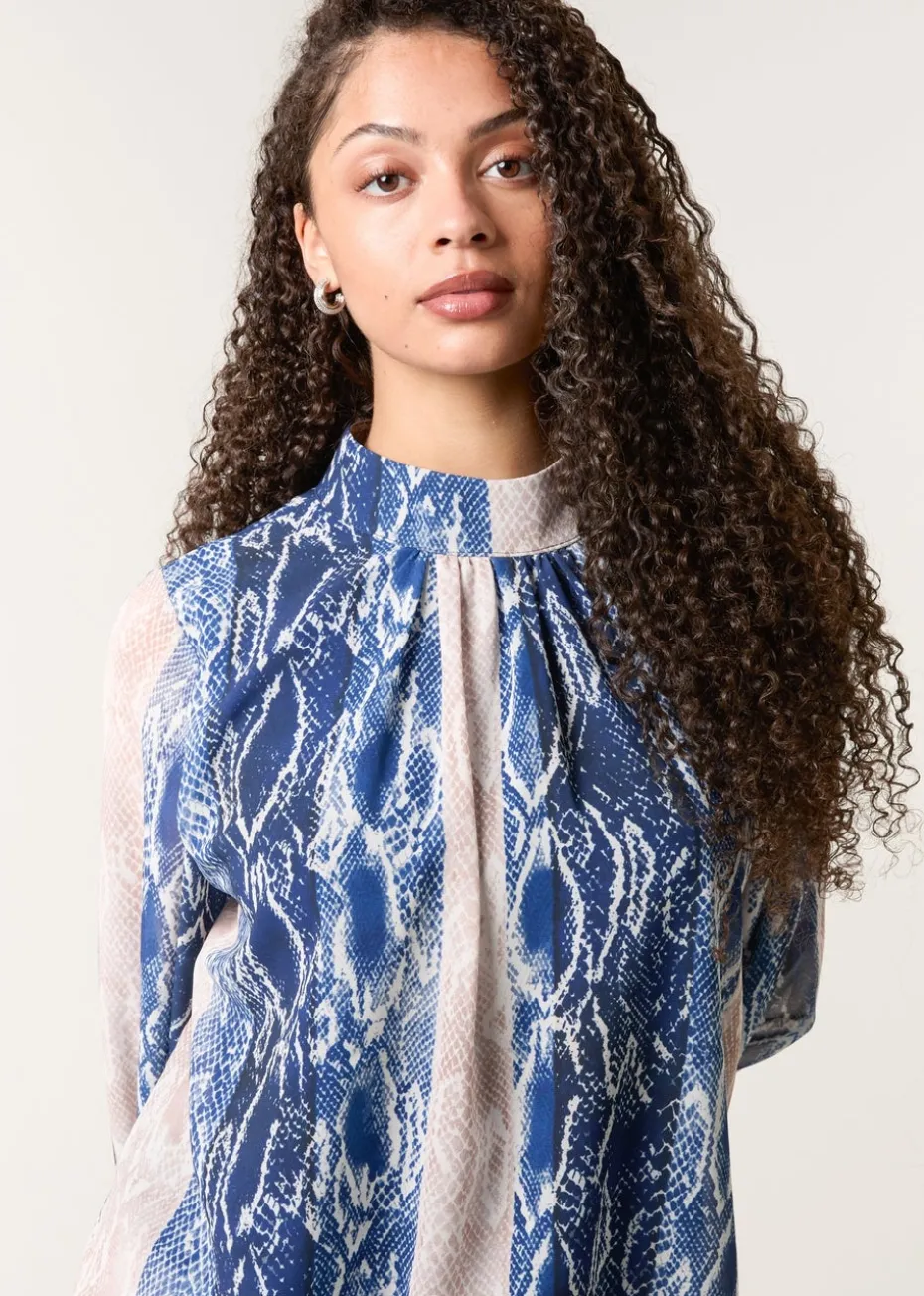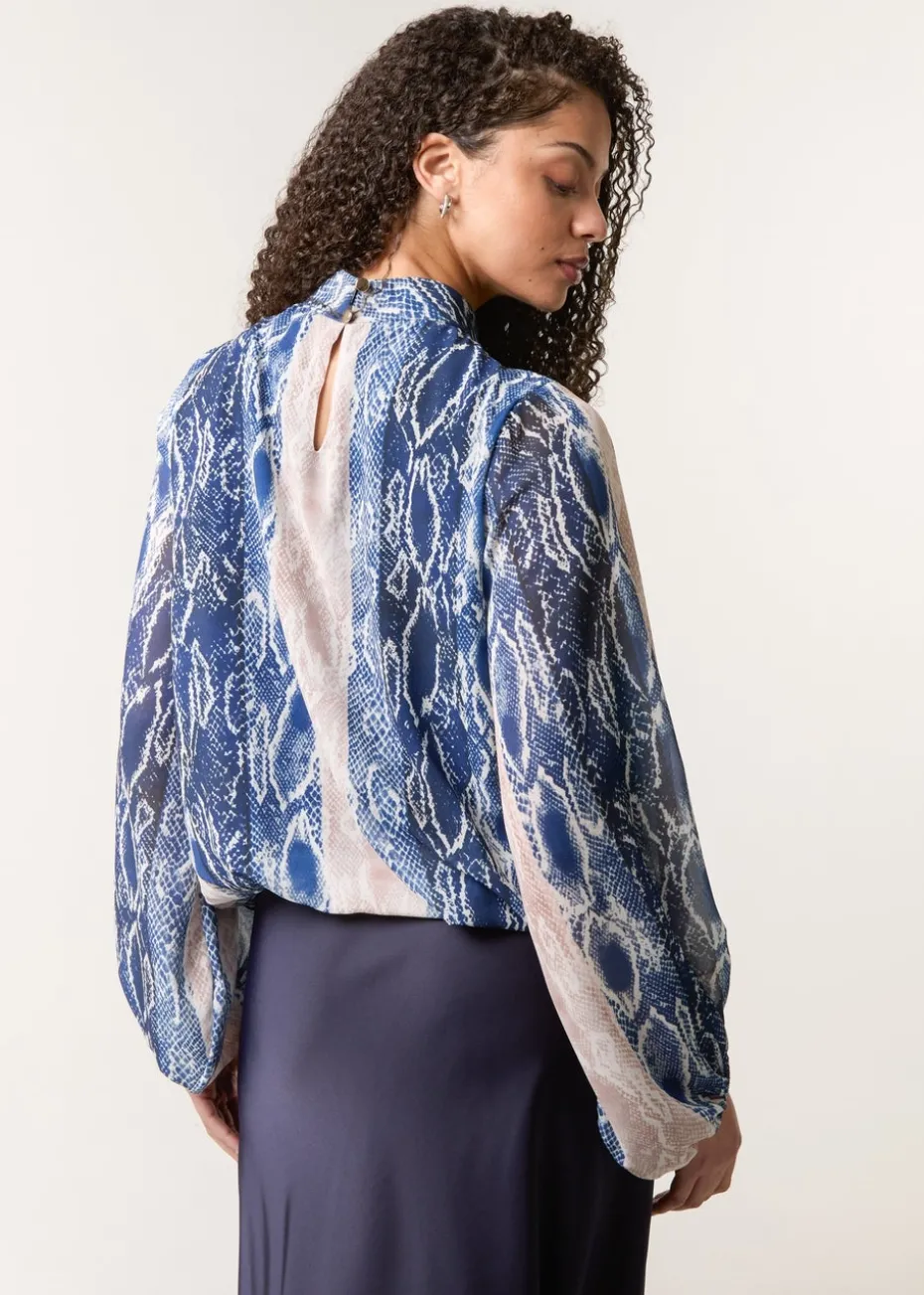 Blue Vanilla Navy Snake Skin High Neck Blouse