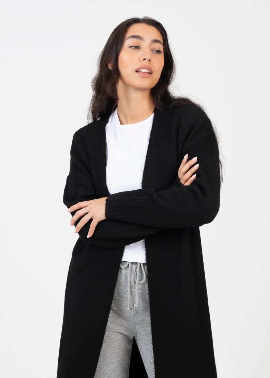 Brave Soul Black Knitted Dropped Shoulder Maxi Cardigan