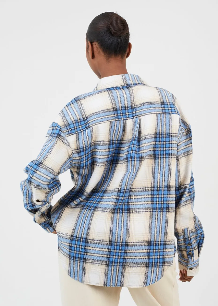 Brave Soul Blue Check Print Long Sleeve Fleece Shirt
