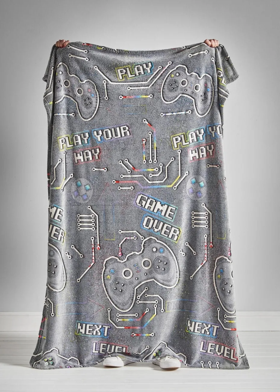 Catherine Lansfield Game Over Glow in the Dark Cosy Fleece Blanket Throw (130x170cm)