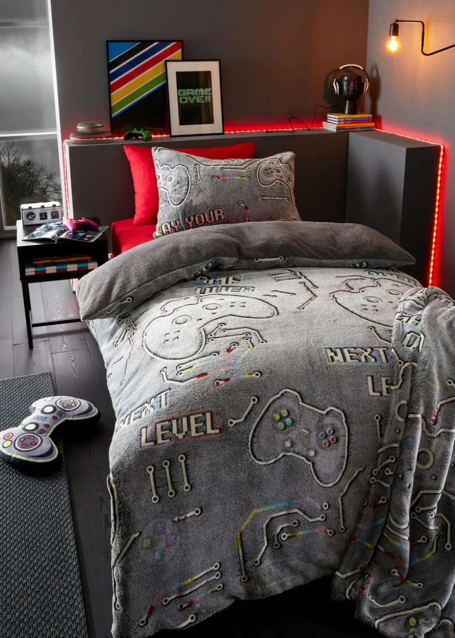 Catherine Lansfield Game Over Glow in the Dark Grey Fleece 3D Shaped Cushion