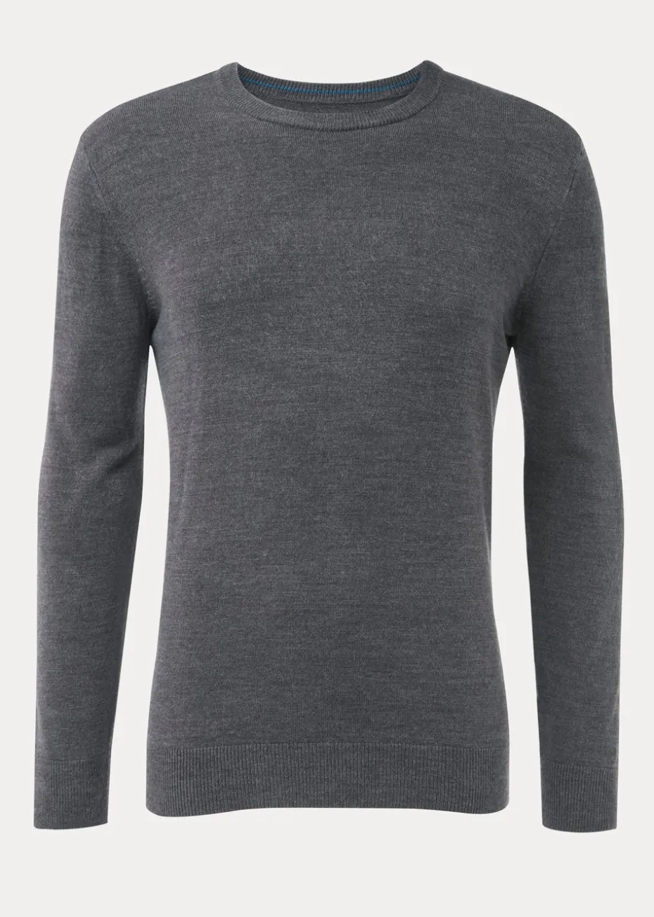 Add an instant classic to your autumn-winter wardrobe with this charcoal soft touch jumper. Made from soft knit fabric in a versatile crewneck style, this seasonal staple is easy to throw on over your favourite shirts and T-shirts on cooler days. Model Height: 6ft 1.